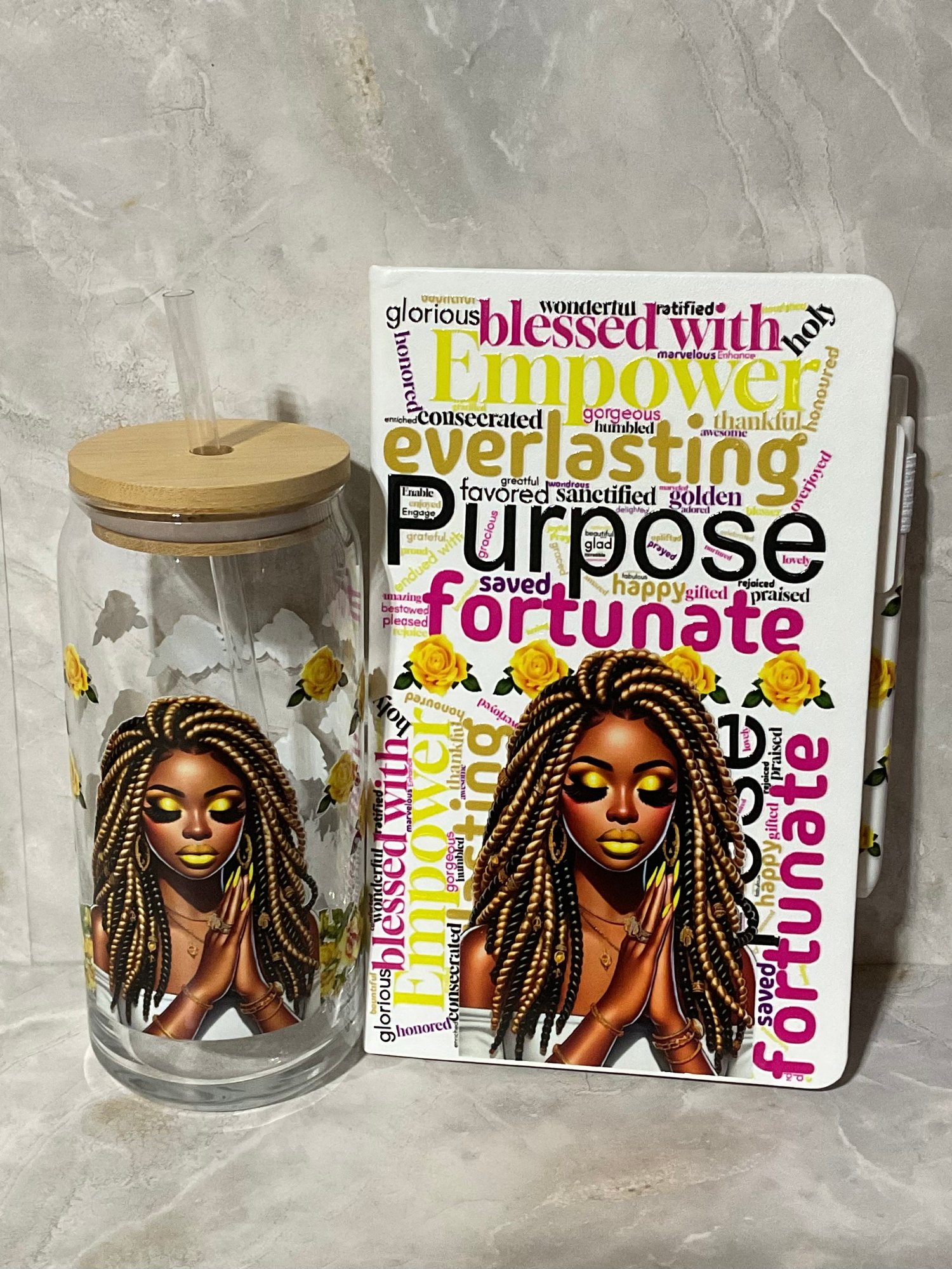 Bring inspiration into your daily routine with this stunning Purpose & Prayer Yellow Rose Bundle, featuring a matching 20oz glass prayer cup and a Purpose-themed journal. Designed for women walking in purpose, healing, and growth, this set is perfect for quiet time, devotion, Bible study, goal-setting, or simply creating a moment of peace throughout your day.