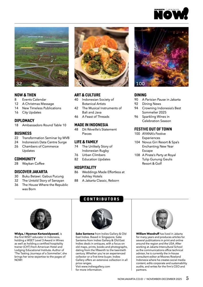 For the last issue of 2025, we're closing the year with gifts, gatherings and celebrations. We bring you an inspiring shopping list of meaningful artisanal items, all made here in Indonesia, and then it's a ‘wrap-up’ of the best places to celebrate the festive season, from Christmas luncheons to New Year’s Eve parties.