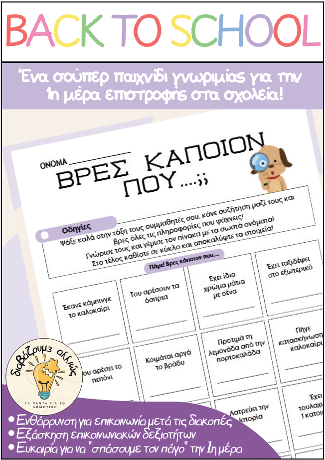 🎉 Βρες κάποιον που… – Παιχνίδι γνωριμίας για την 1η μέρα στο σχολείο!
