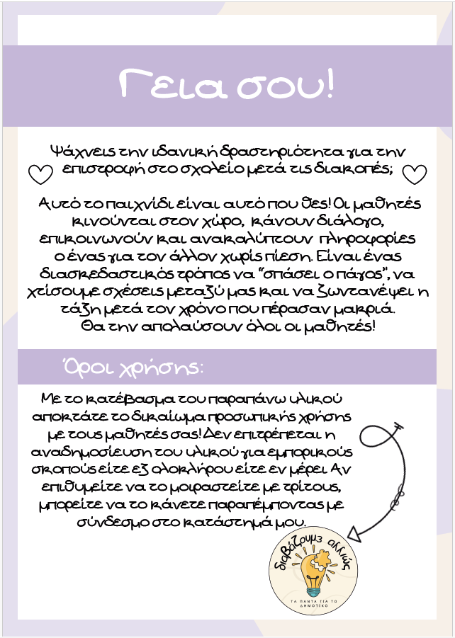 Ένα διασκεδαστικό και δυναμικό παιχνίδι, ιδανικό για την πρώτη μέρα στην τάξη!