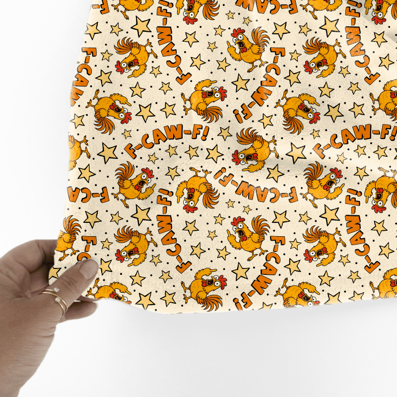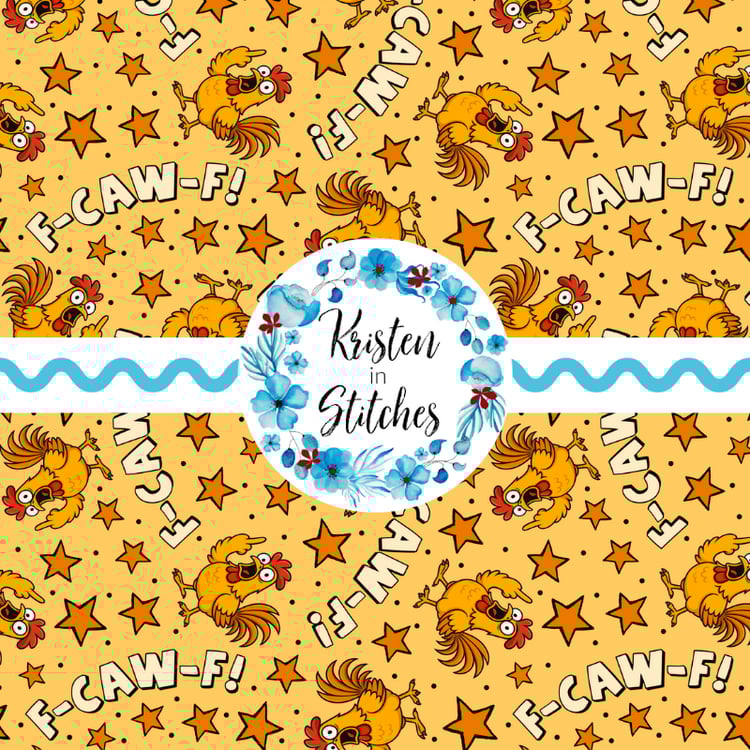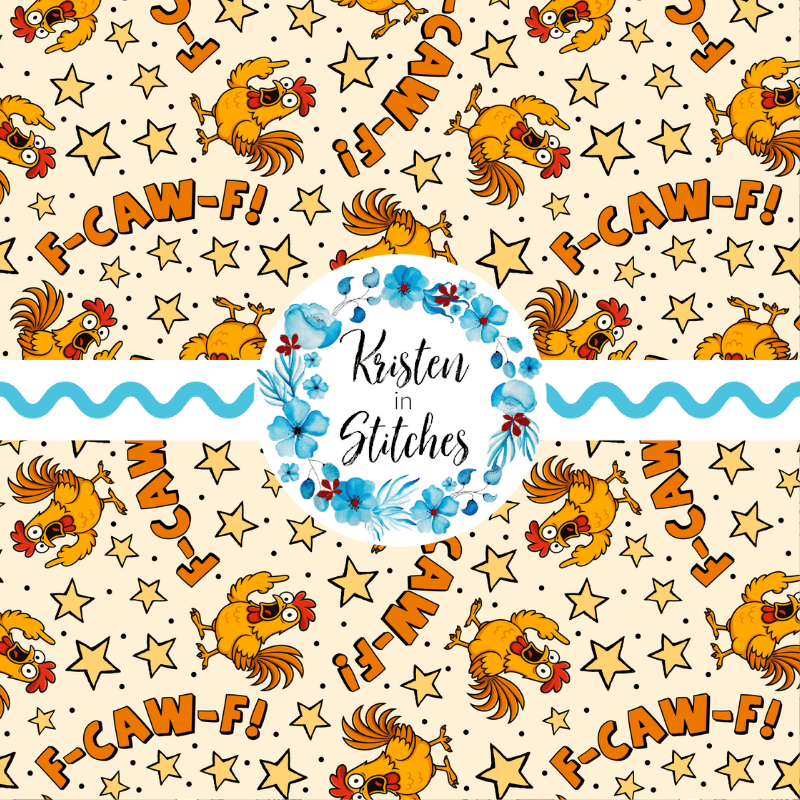 Sarcastic roosters saying "F-Caw-F" with middle fingers and stars on ivory.