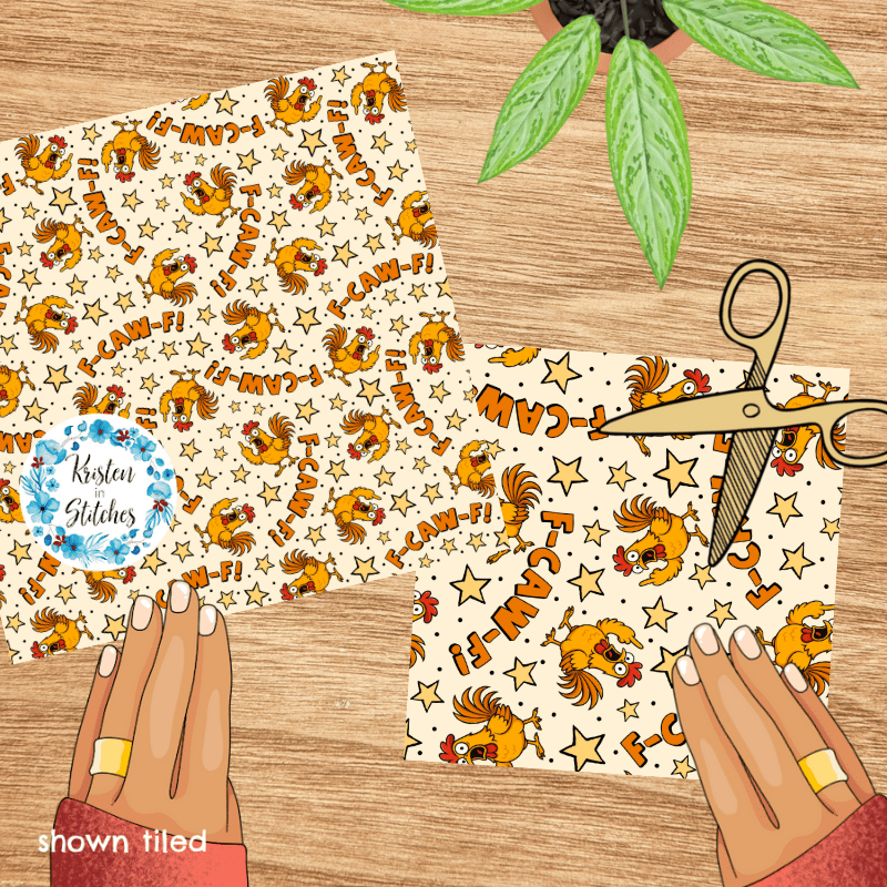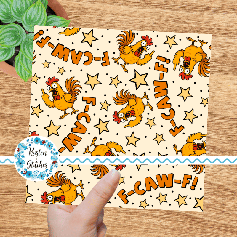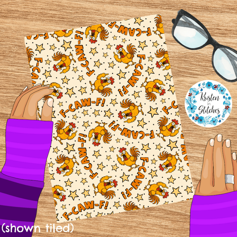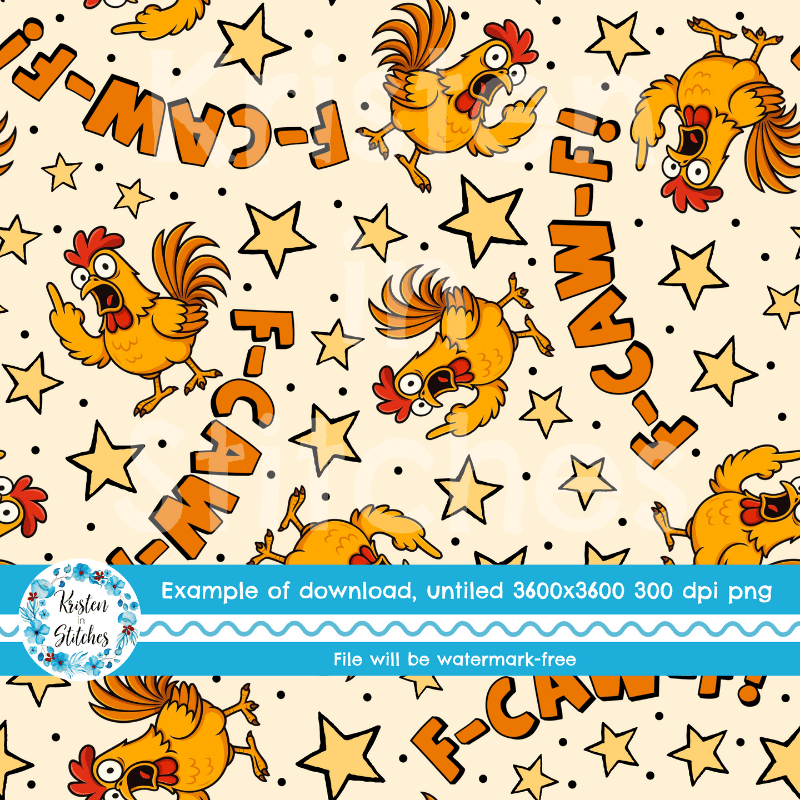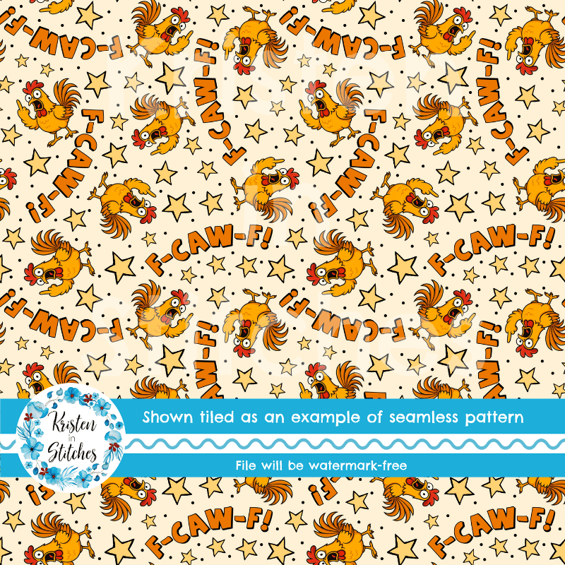 F-CAW-F Sarcastic Roosters Seamless Pattern, Fuck Off FcawF Birds, Middle Finger, Chickens