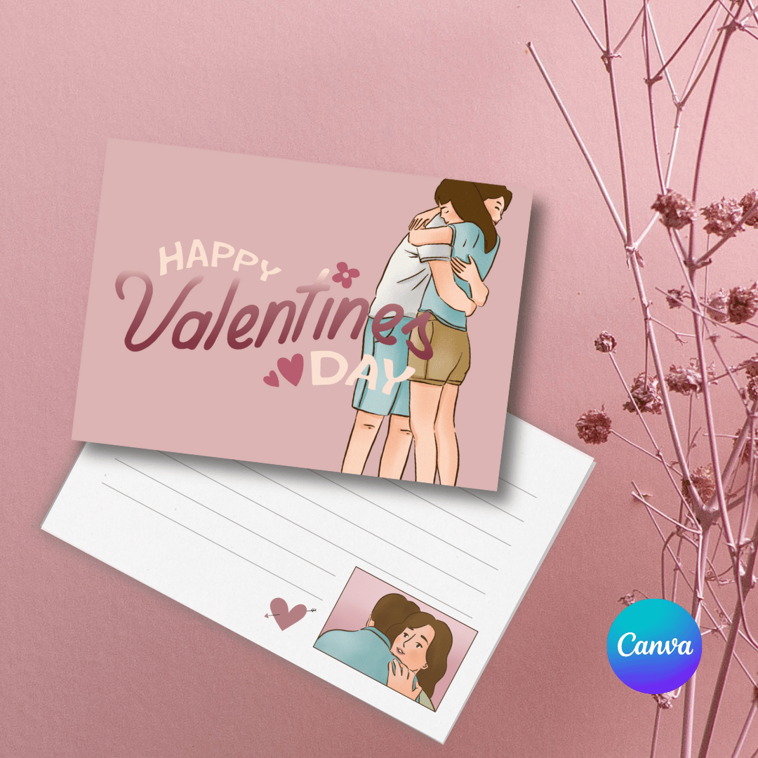 The postcard includes space to write a personalized message, complemented by delicate lines and charming decorative elements. With a warm pastel palette of pinks and burgundy, this template is perfect for surprising your boyfriend, girlfriend, or loved one on February 14th. It's free, editable, and fully customizable on Canva, making it an ideal choice to create a meaningful Valentine’s Day gift that expresses your love in a cute and unique way.