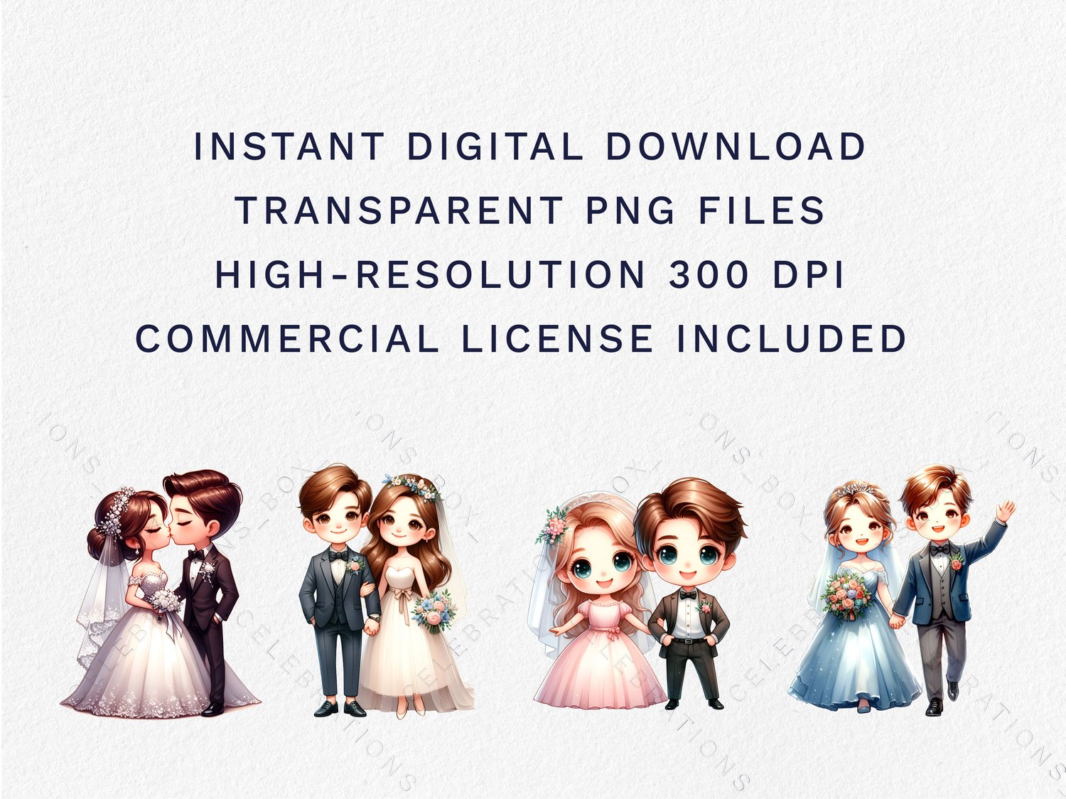 Best of all, you can use these wedding illustration for commercial purposes with our free commercial use license. So, whether you're crafting a memorable gift or designing a wedding-themed masterpiece, let the love and charm of this collection guide your creative journey. Download now and watch your creations come to life with the spirit of true love.