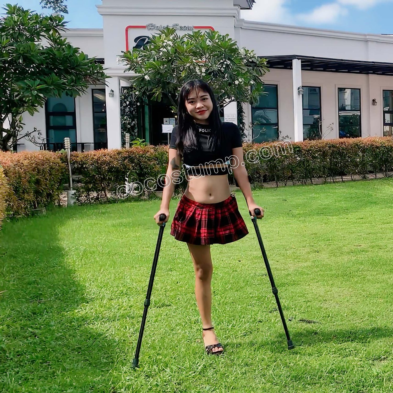 As she crutched her way to the breakfast room in the hotel lobby, Trixie LAK sported a stylish black crop top and sexy short pleated skirt. With determination in her eyes, she reached the breakfast spread and indulged in a delightful morning meal. 20 min, 2160p.