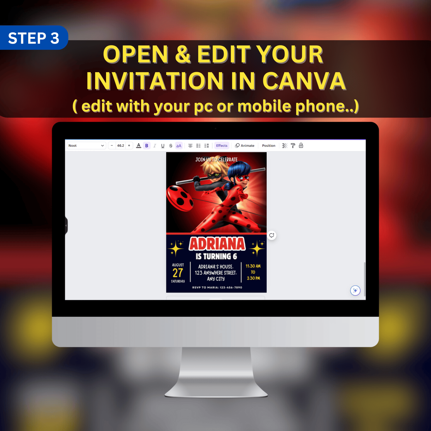 Customize your invitation using Canva.