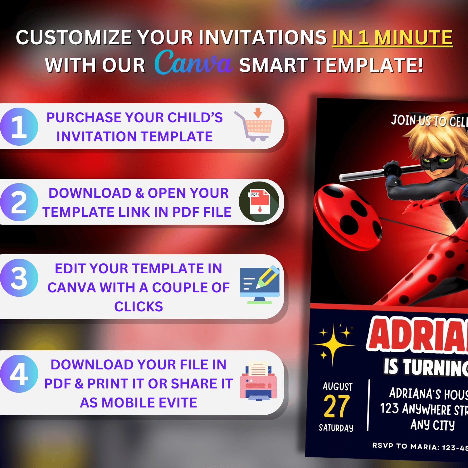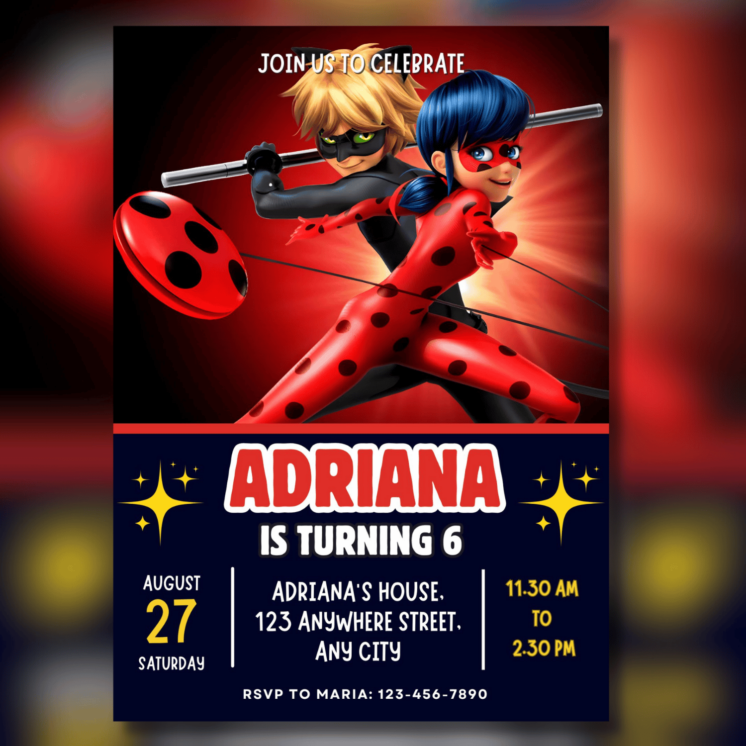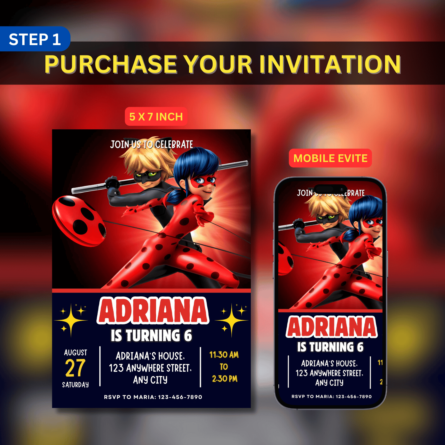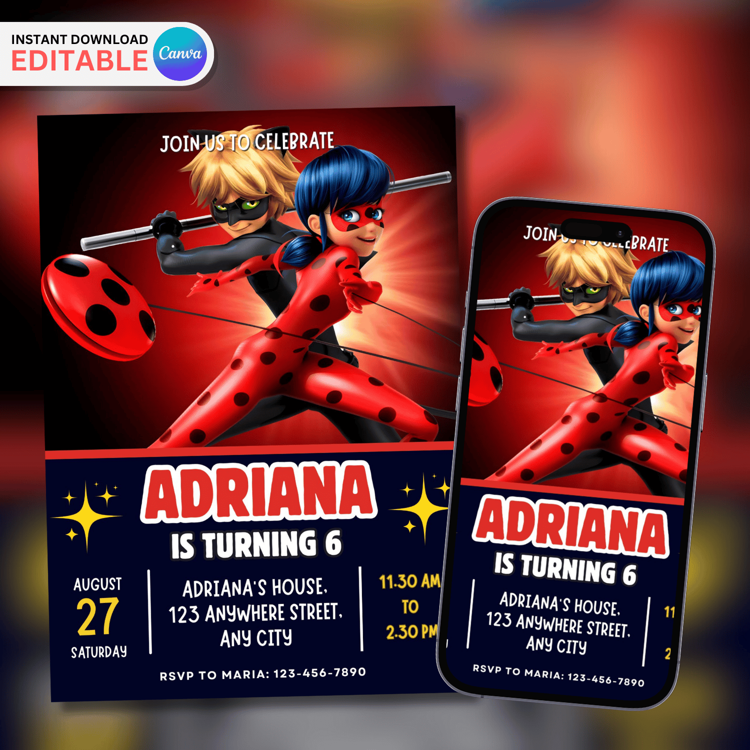 Miraculous Birthday Invitation, Miraculous Invitation, Miraculous Birthday Party Themed Card, Mobile Digital Invitation, Kids Birthday Invitation 5x7