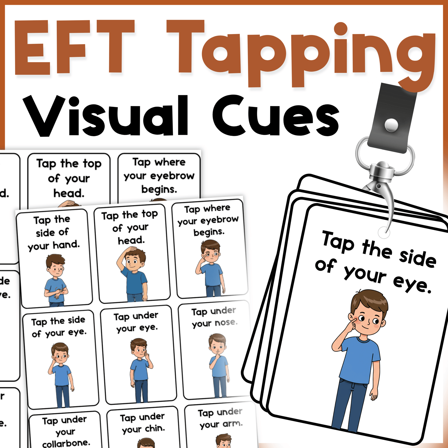 Looking for visual cue cards that make EFT tapping easy and accessible for kids? These EFT Tapping points chart cards show each tapping step with simple, friendly illustrations that students can follow — no explanation needed.