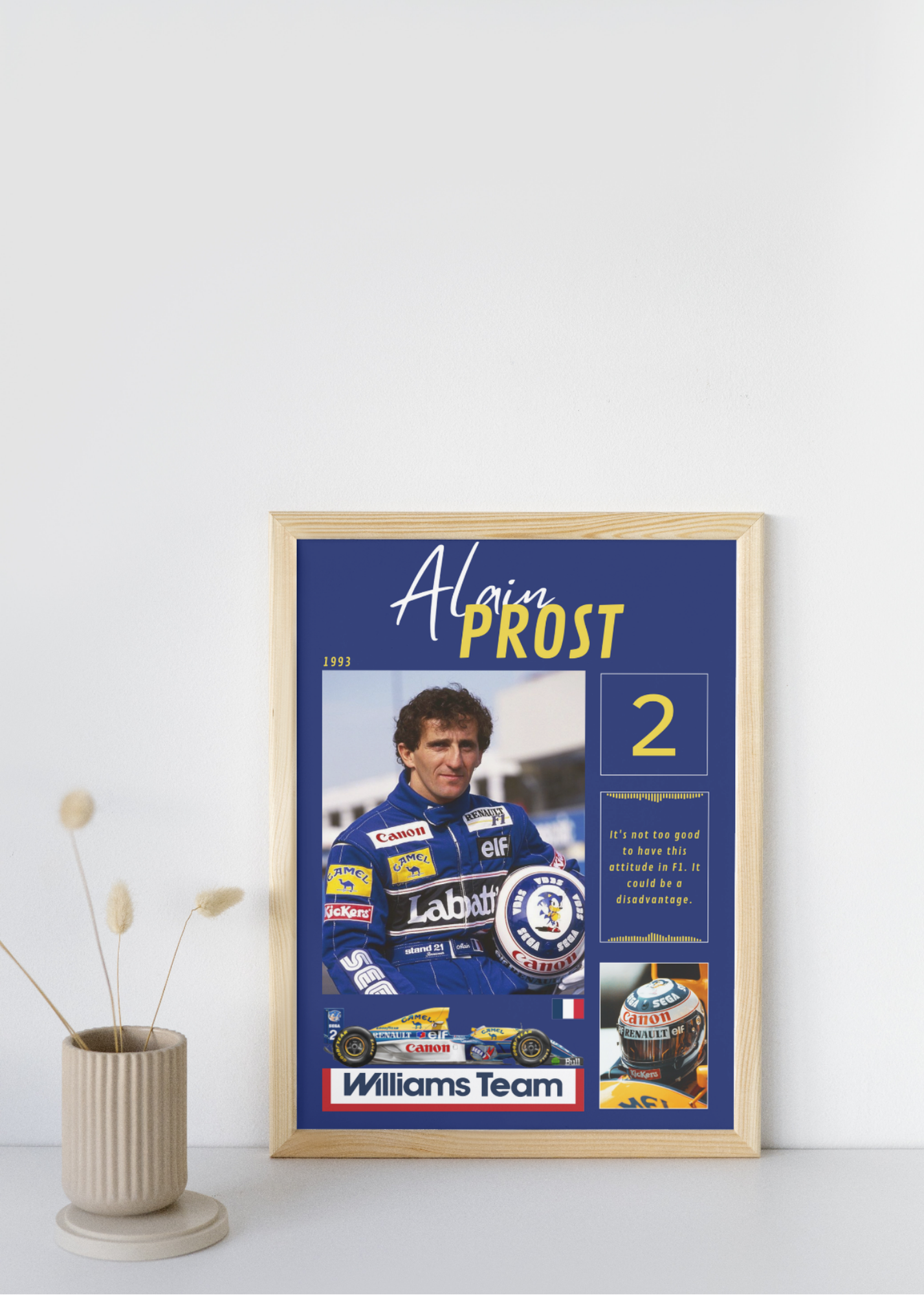- A legendary poster celebrating "The Professor," Alain Prost, and his fourth World Championship title with Williams in 1993.