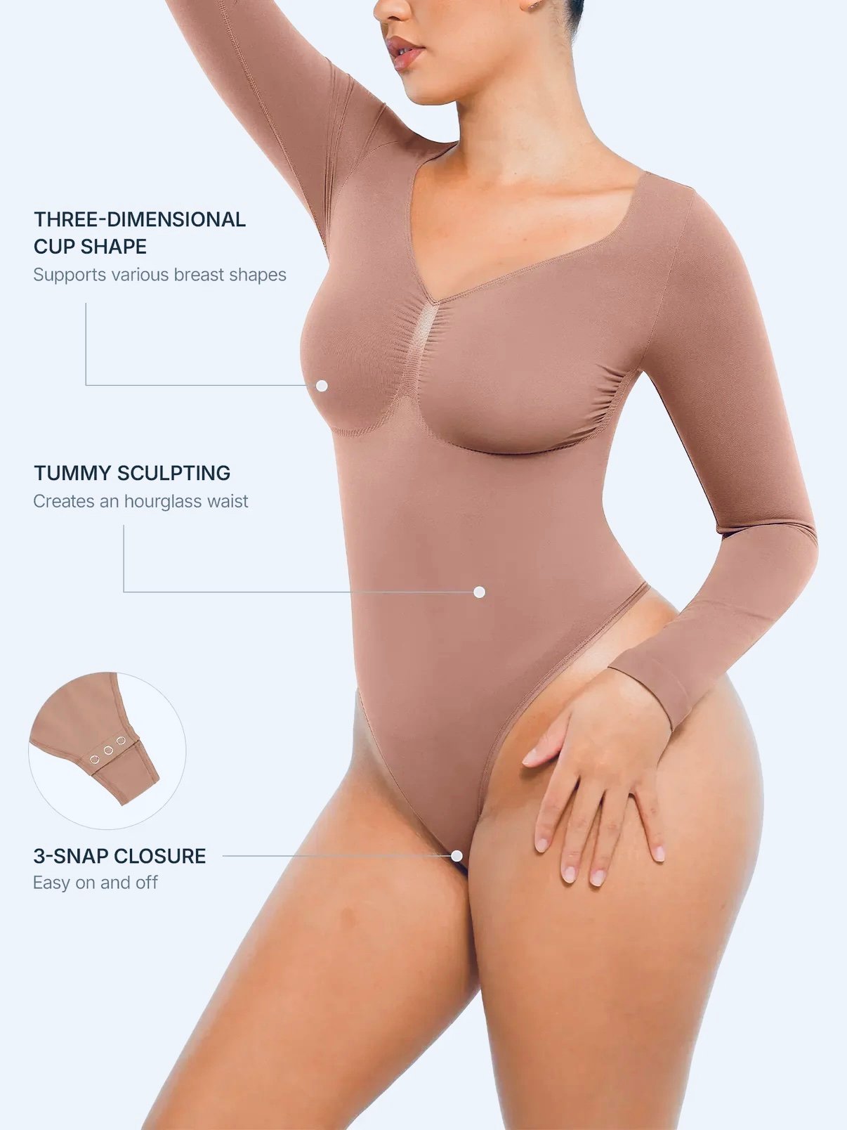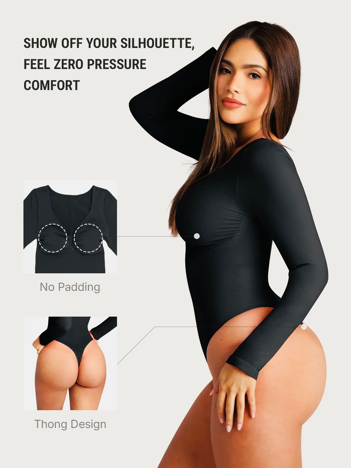 - Can I wear this without a bra? Yes, the bodysuit is engineered with a unique 3D Bust Support mechanism that provides lift and security for all sizes, eliminating the need for extra layers.