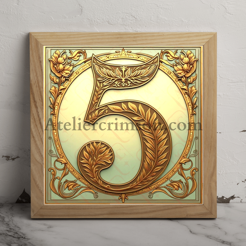 Number 5 gold metal art nouveau Download Now this high quality AI-generated image, perfect for adding a touch of tranquility and creativity to any space.
