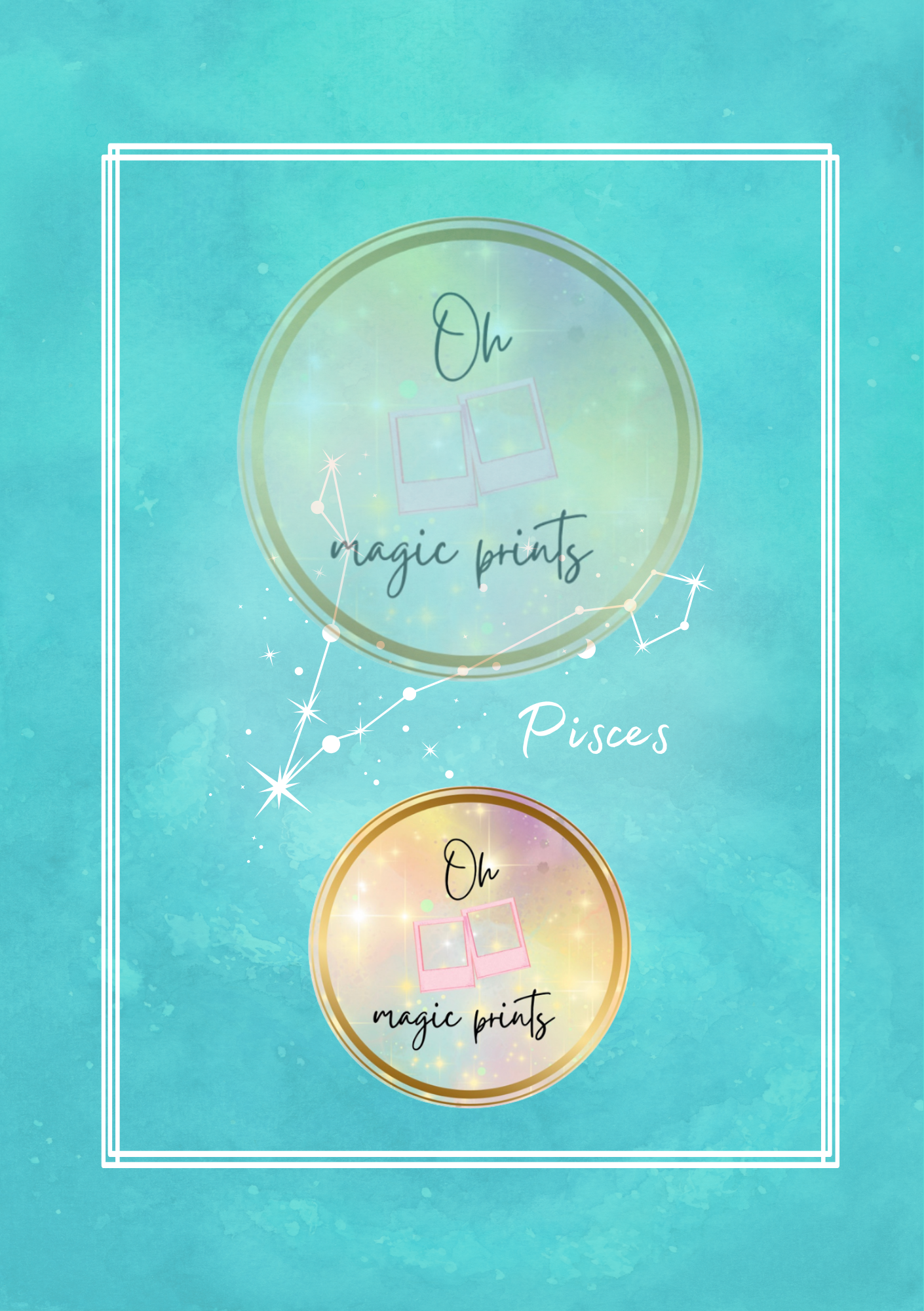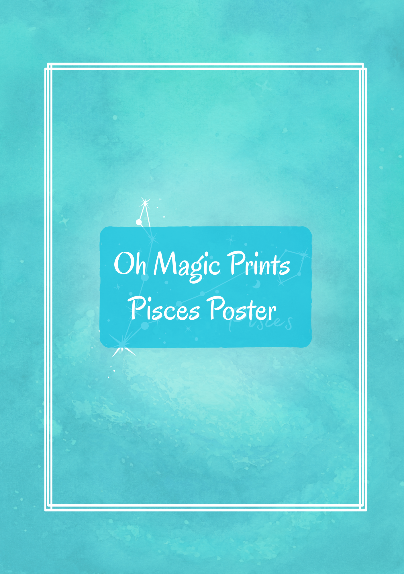 Drift into a dreamy world with this calming Pisces star sign print, designed with a soft yet vibrant turquoise-blue background and the elegant Pisces constellation. This minimalist A5 design brings a gentle splash of celestial charm to any space.