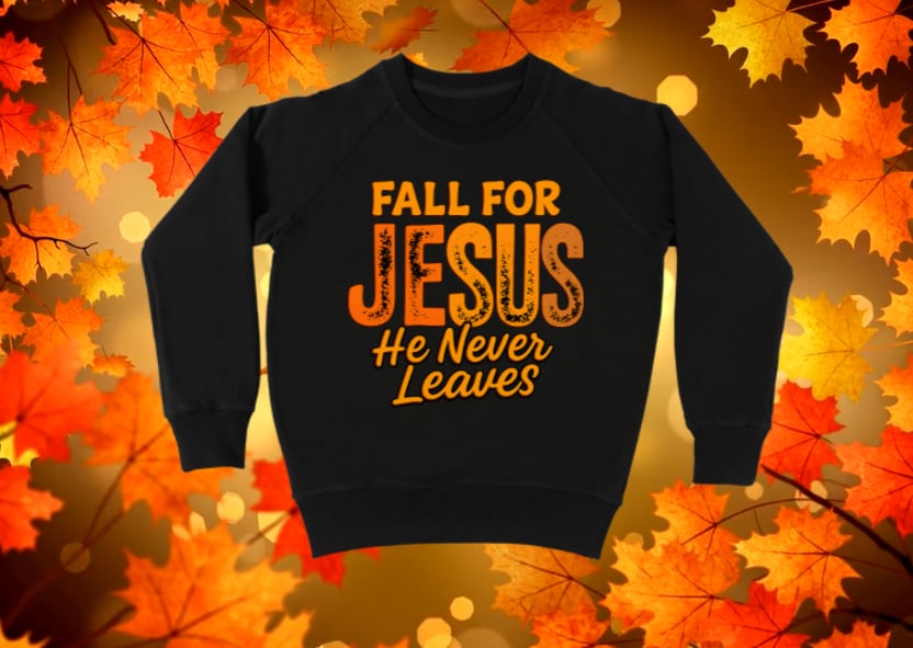 Celebrate faith and fall all in one with our “Fall for Jesus, He Never Leaves” PNG design!