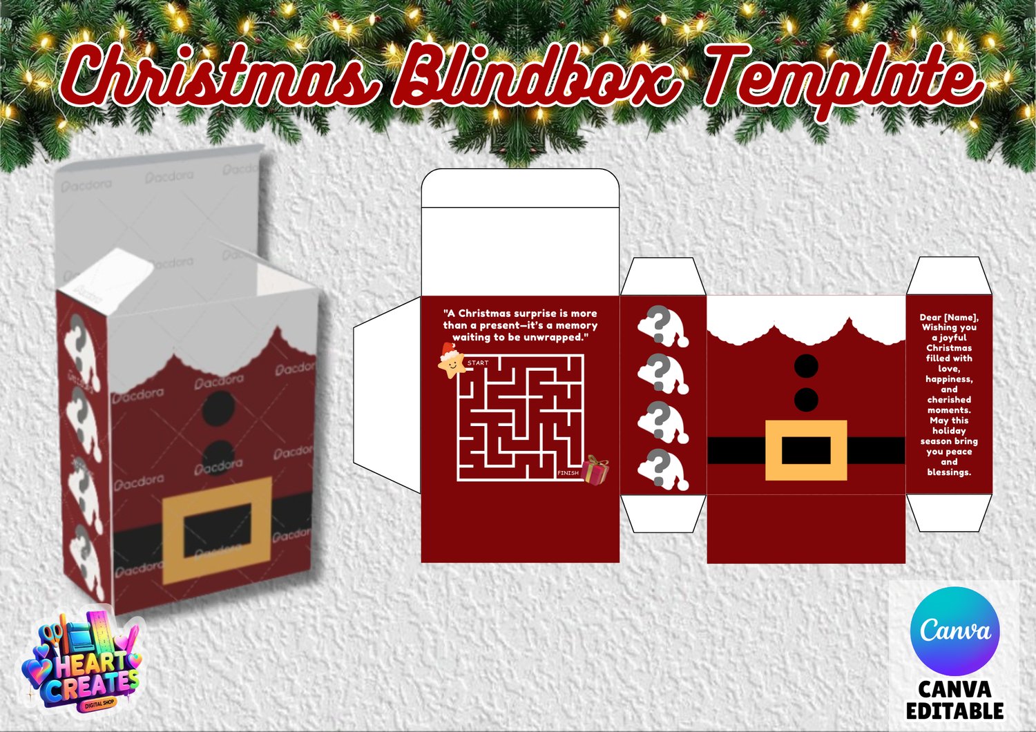 Introducing our festive Christmas Blind Box Template featuring a adorable Santa Claus design! This Canva-editable template is perfect for holiday parties, gift exchanges, or special events. Easy to customize with your own details, it adds a fun and magical touch to your celebrations. Simply download and personalize with ease—spread Christmas cheer with this charming Santa-themed blind box!