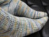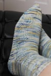 This pattern was created in collaboration with Holly Press Fibers for the second Lots of Sock KAL. The yarn was custom dyed to incorporate blue and yellow, the color for Down syndrome, and the stitch pattern was inspired by the yarn colorway name, with meandering twisted stitches gently moving down the leg and foot like the sun streaming through the clouds. As part of the KAL, all proceeds from the pattern on its release day were donated to Down Syndrome International. Thanks to your purchases, we raised $663 for this great organization!