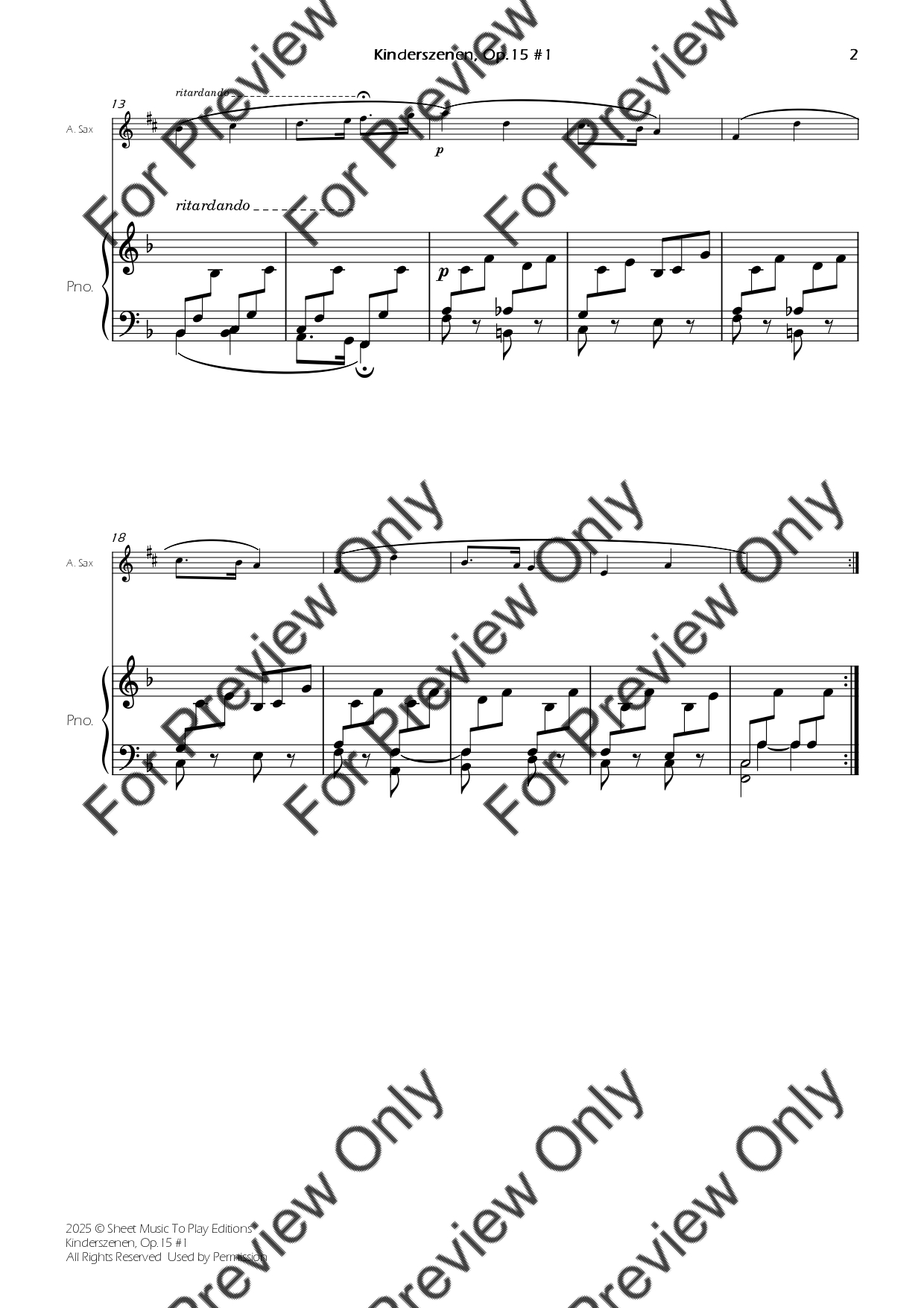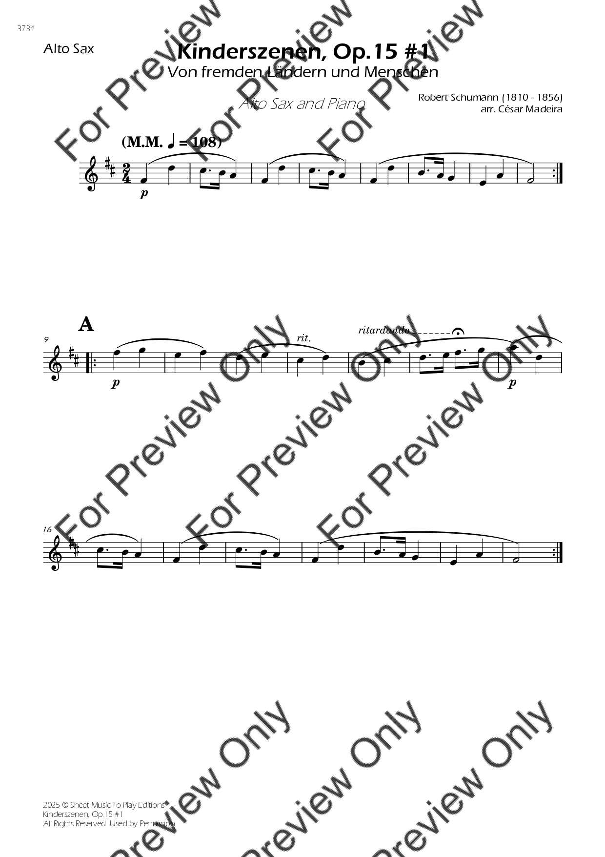 Kinderszenen No.1, Op.15 by Robert Schumann. Arrangement for Alto Saxophone and Piano. With Full Score and Individual Parts. Have fun!