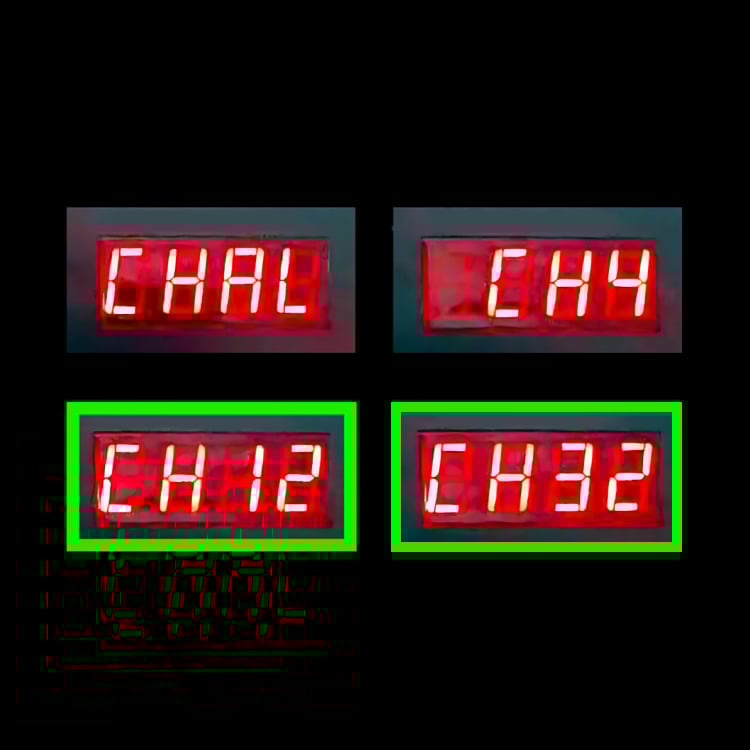* Verifique en el display del equipo, que muestre los modos dmx: CH4, CH12 y CH32 (cuarta foto).