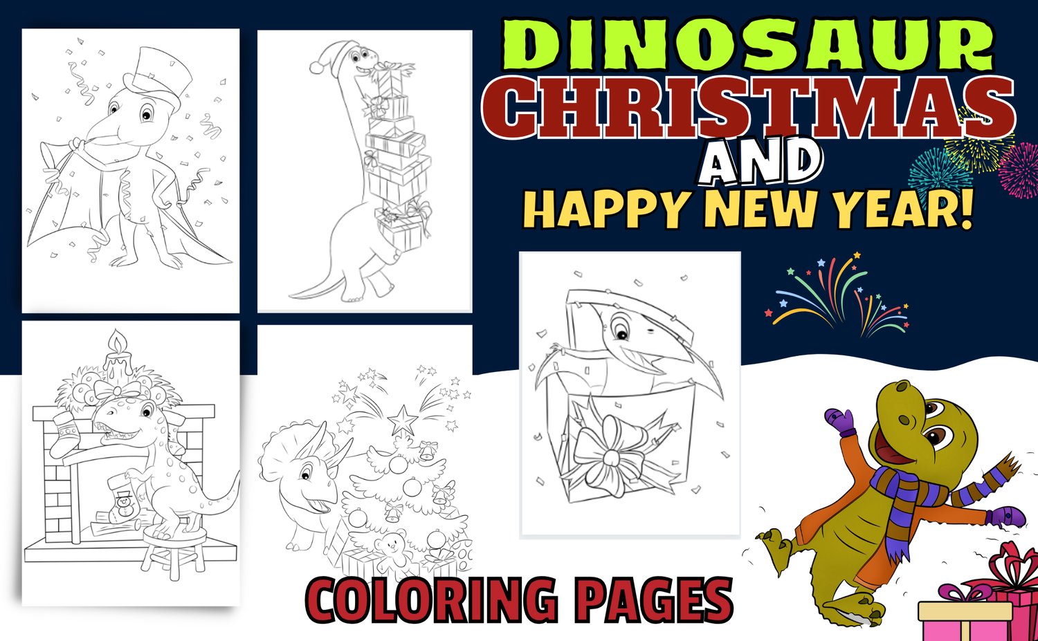 Dinosaurs are decking the halls in this festive printable coloring book for kids! Watch your favorite prehistoric creatures celebrate Christmas and ring in the New Year in these joyful, detailed coloring pages.