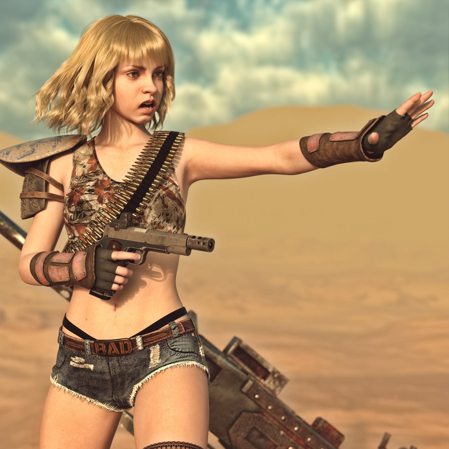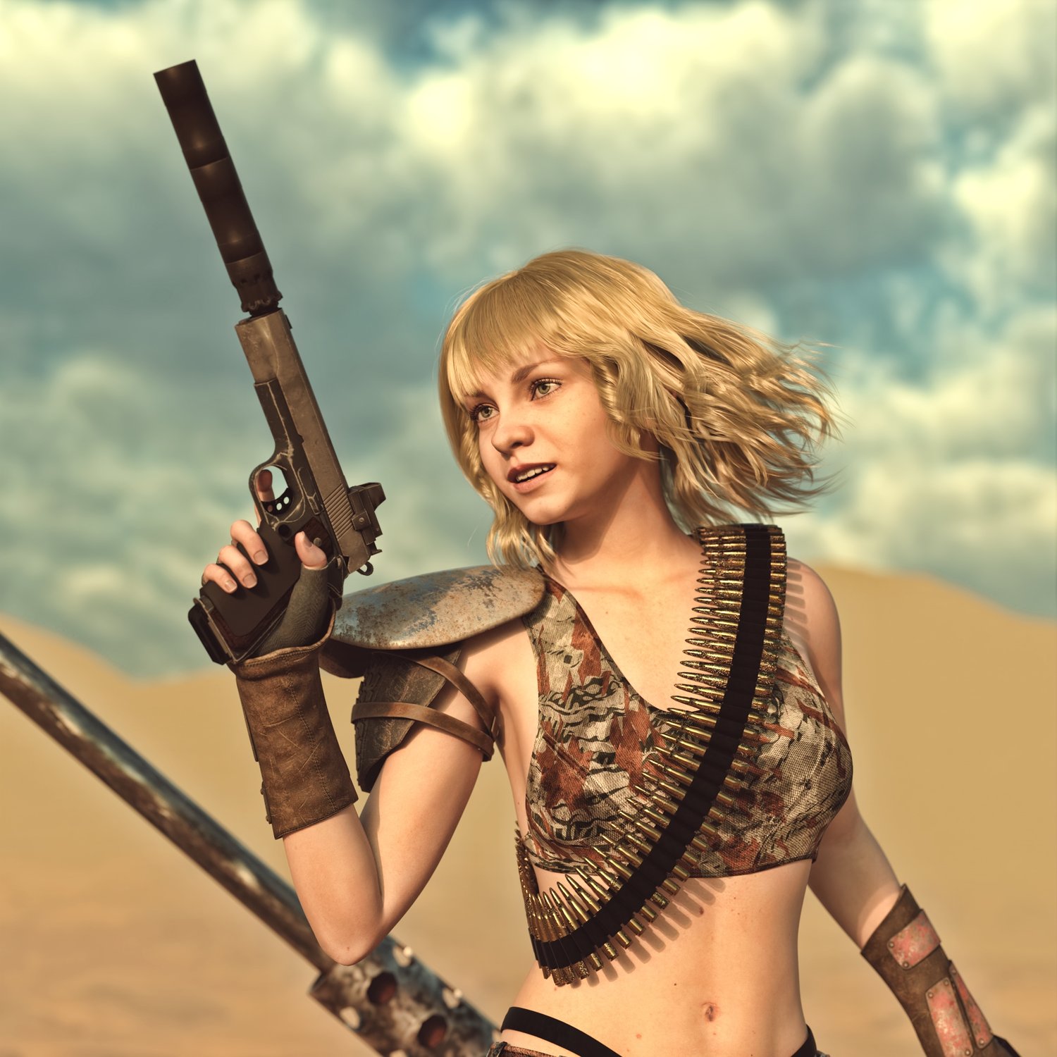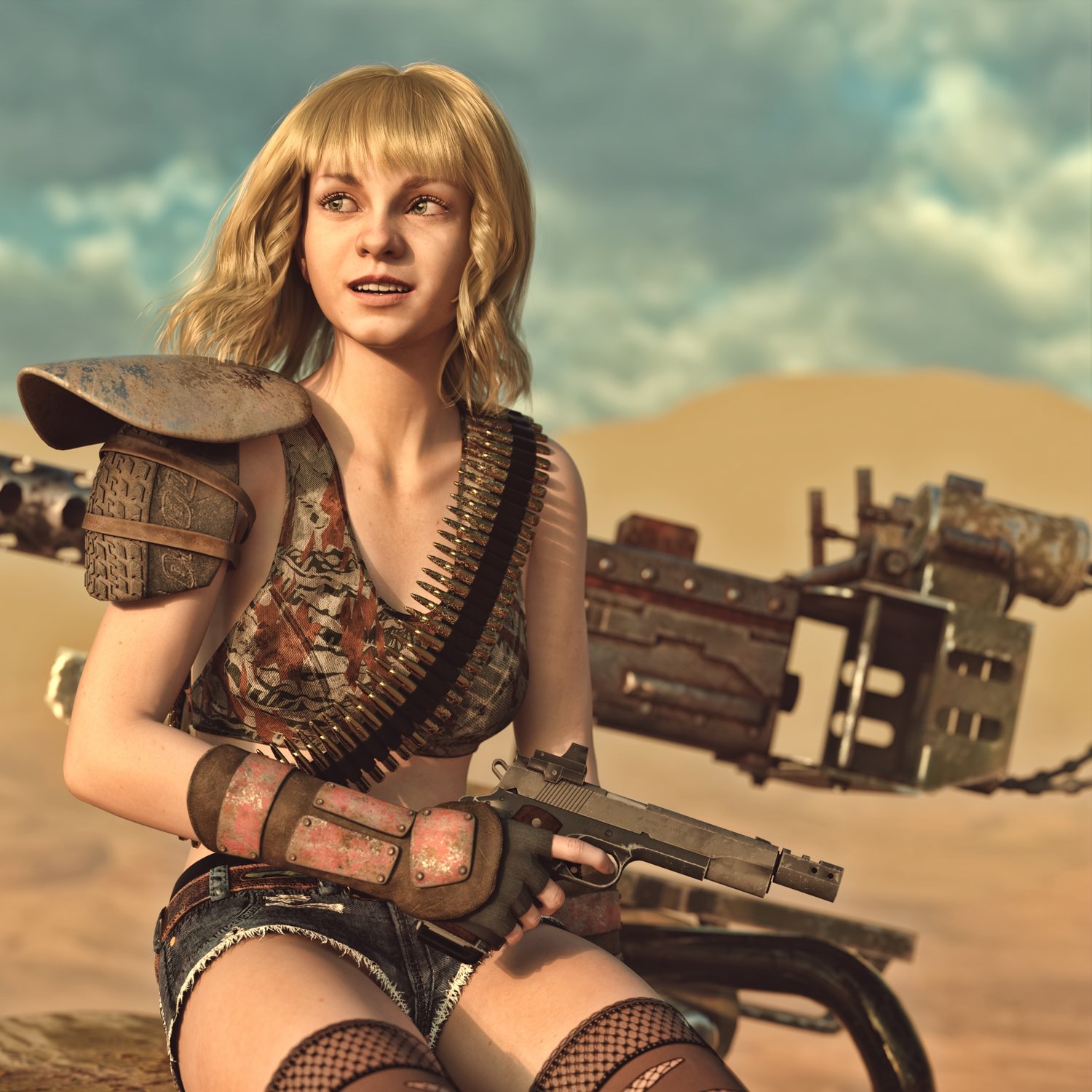 A legendary 1911 with a gritty look and some attachments. Are you planning to survive in a post nuclear wasteland? Then 3d pistol won't help you, but until then you can make cool postapocalyptic images in DAZ with it :) The prop is rigged and converted for use with DAZ. Trigger, safety, hammer etc also rigged for more realistic pictures. Great or your survival grungy pics :)