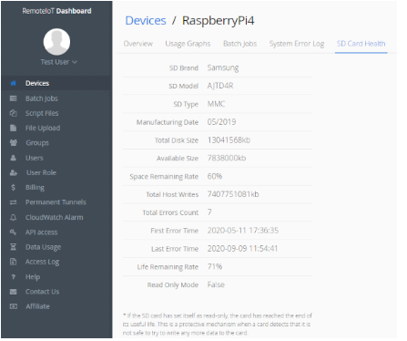 For Raspberry Pi users, SD card wear is a major concern. RemoteIoT’s analytics help track SD card lifespan, error rates, and read/write cycles — making maintenance proactive instead of reactive.