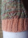 Here is PDF file for a pair of knitted fingerless mitts. These mitts have branches with owls sitting in them. I used 12, 6/0 glass beads for the owls eyes. I worked the top and bottom rib in a contrasting color. This project requires a small amount of lace weight yarn, 400 yards of the main color and about 50 yards of the second color. Because of this they can be knitted from more percious yarn such as alpaca, yak or cashmere. Mine are from alpaca. I used double pointed knitting needles in US sizes 0 and 1. I usea crochet hook to place the beads as I go, but the tool choice is yours. These fit a medium woman's hand about 7" around.