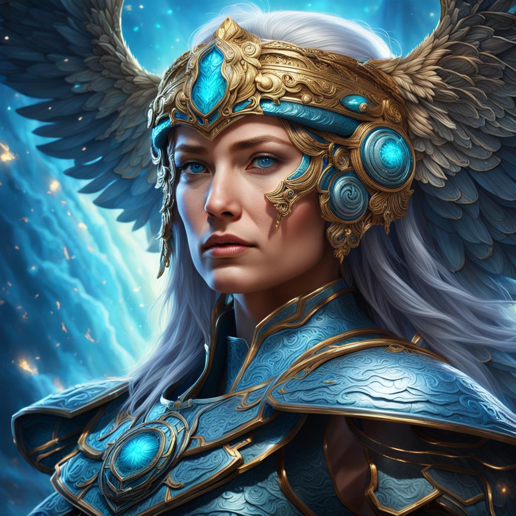Add a touch of heavenly grace to your collection! Click "Buy Now" to secure your copy of "Majestic Valkyrie Goddess with a Smile" today.