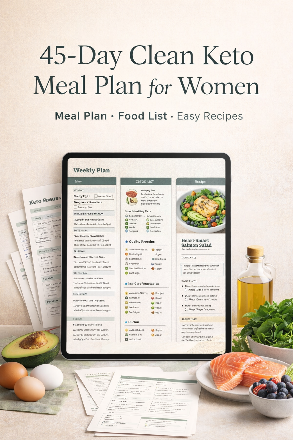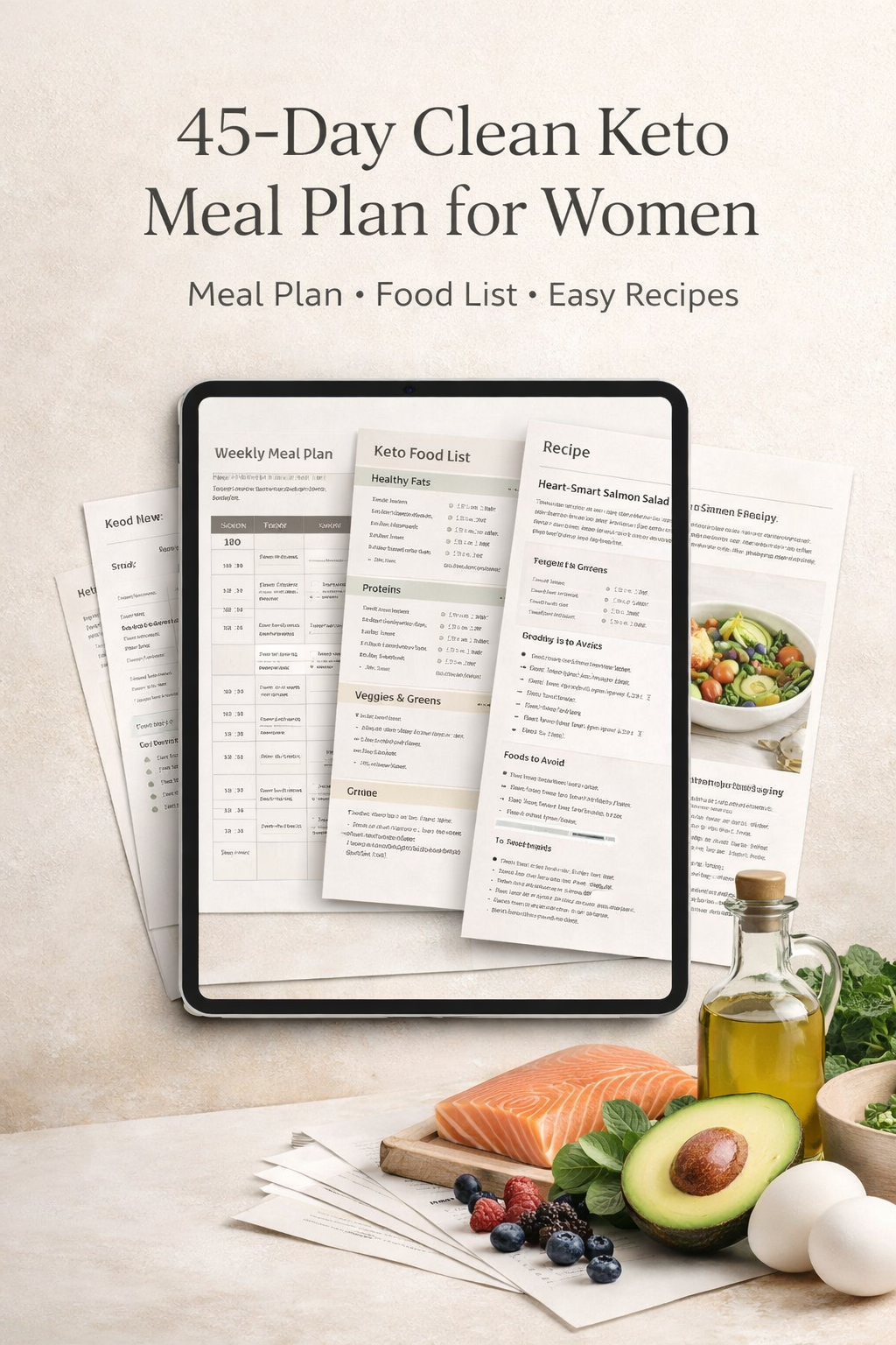 45-Day Clean Keto Meal Plan for Women is a digital wellness PDF created for women who want more structure, better food choices, and a more realistic way to stay consistent with low-carb eating.