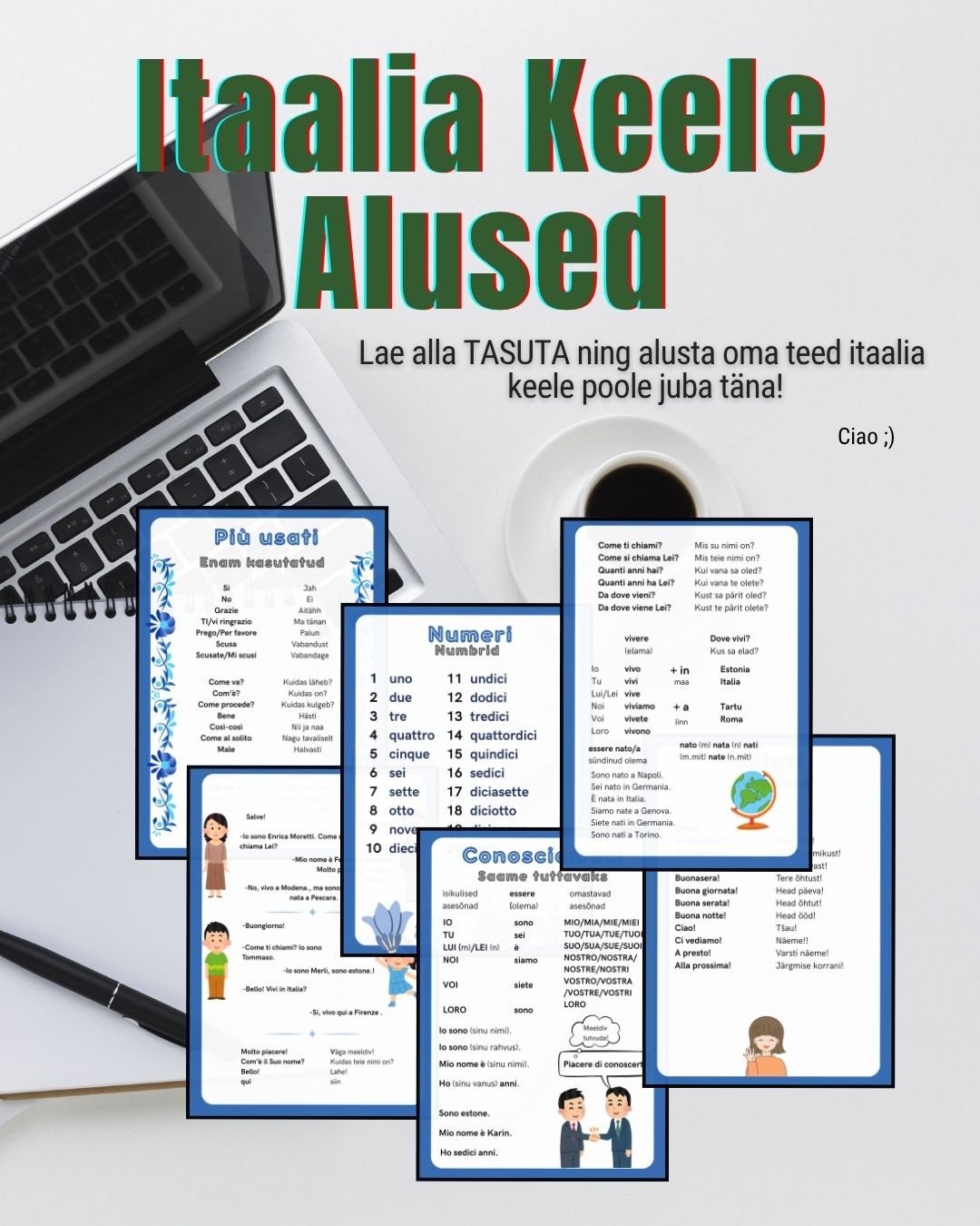 Alusta itaalia keele õppimist täna - tasuta pdf et alustada oma itaalia keele teekonda. Itaalia keele õppematerjalid, sobivad nii lastele kui täiskasvanutele.