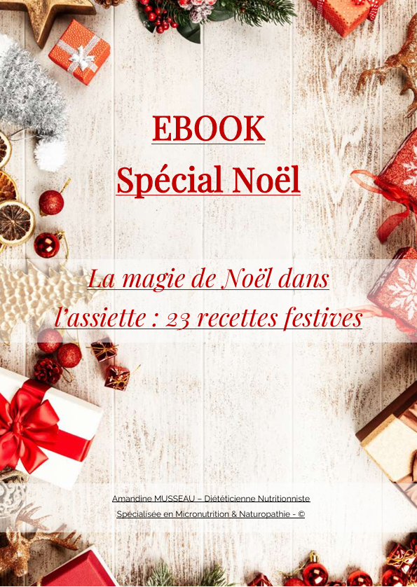 Les fêtes de fin d’année sont des moments particuliers, remplis de douceur, de partage et de gourmandise. Pour vous aider à célébrer ces instants magiques, je vous ai concocté un ebook spécial Noël, en collaboration avec une collègue diététicienne, pour inonder vos papilles de plaisirs sucrés et salés.