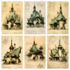 Green Epic Storybook Fantasy Architecture - 20 Art Prints