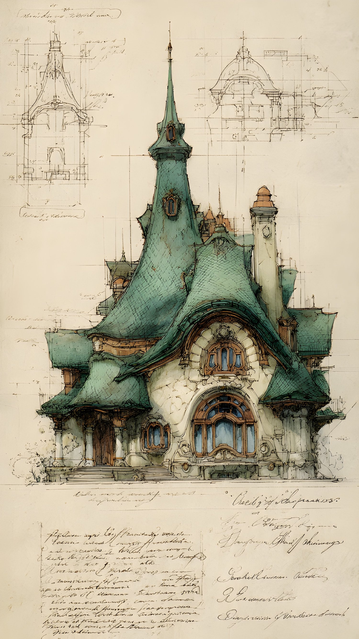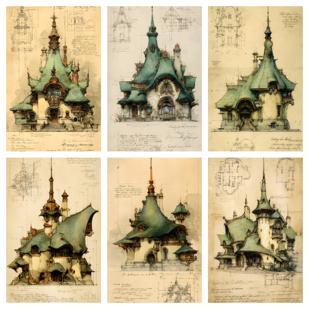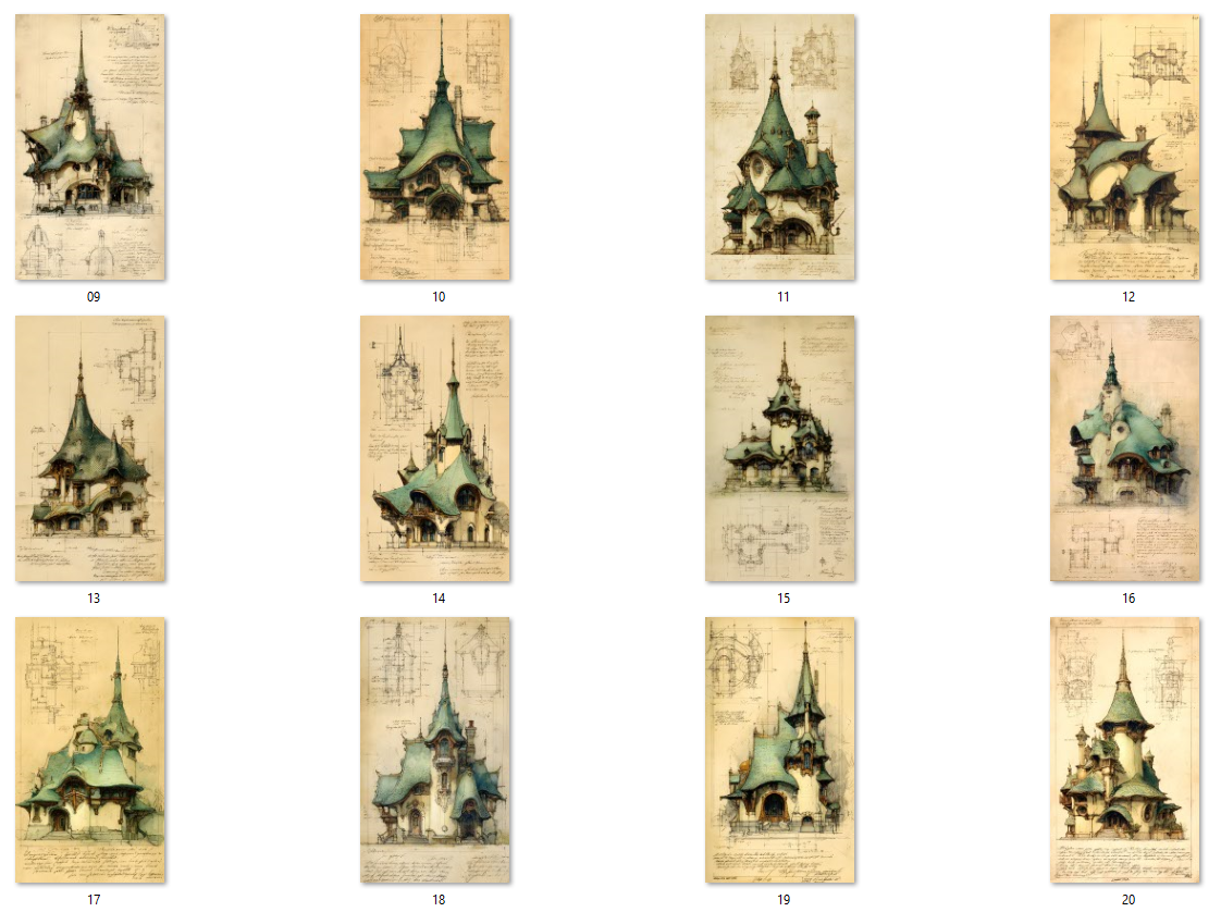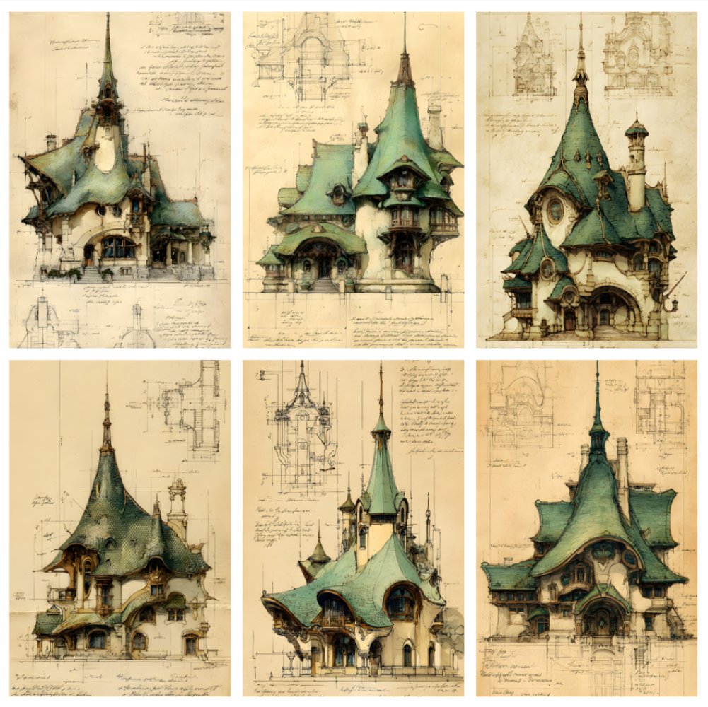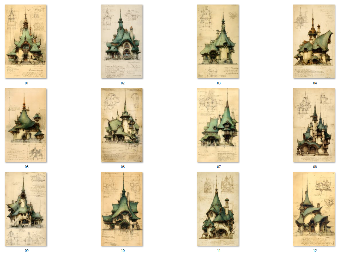 20 AI-generated JPG digital art prints – Fantasy Architecture collection, Green Epic Storybook Fantasy Architecture - 20 Art Prints. Gothic building illustration, architectural sketch, vintage blueprint art, digital download, wall art, fantasy castle, art nouveau building, steampunk architecture, whimsical house, instant download, printable wall art. High resolution 300 DPI, 2700x4800 pixels, vertical format 9:16, ready for print or digital use. Instant download, no physical product. Commercial license included.