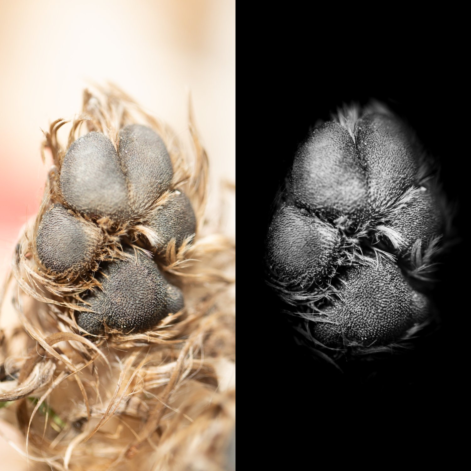 I transform your pet's paw photos into captivating black and white images, creating a touching tribute to their unique spirit which you can keep forever.