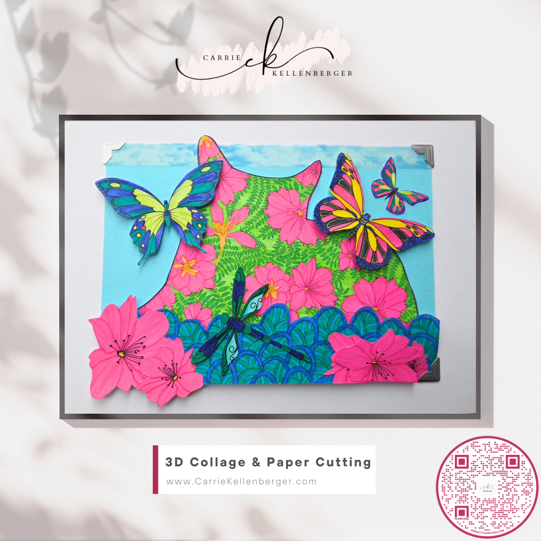 My paper cutting technique adds an extra 3D dimension of beauty and intricacy to each design, making my collages a delightful keepsake.They’re meant to brighten any space: an office cubby, a senior’s bedside, a child’s room, a sunny kitchen, or anywhere your heart desires.
