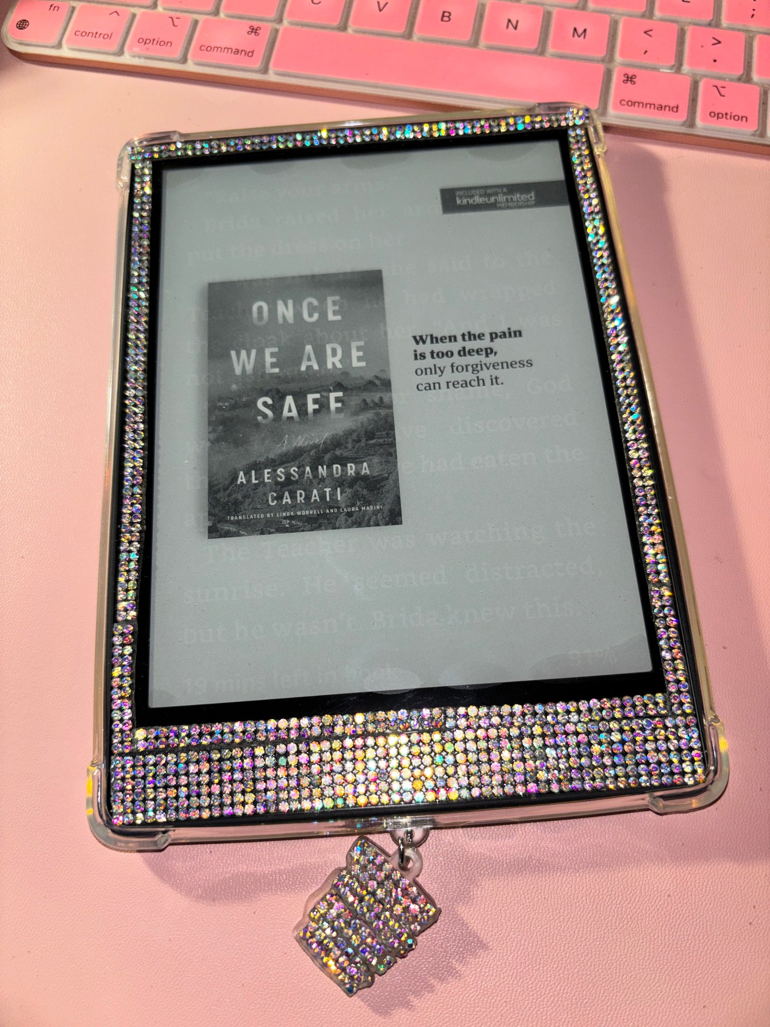 Transform your Kindle into a statement of soft luxury with this handcrafted rhinestone-outlined glass protector. Each piece is designed to catch the light beautifully while keeping your screen fully protected and fingerprint-free.