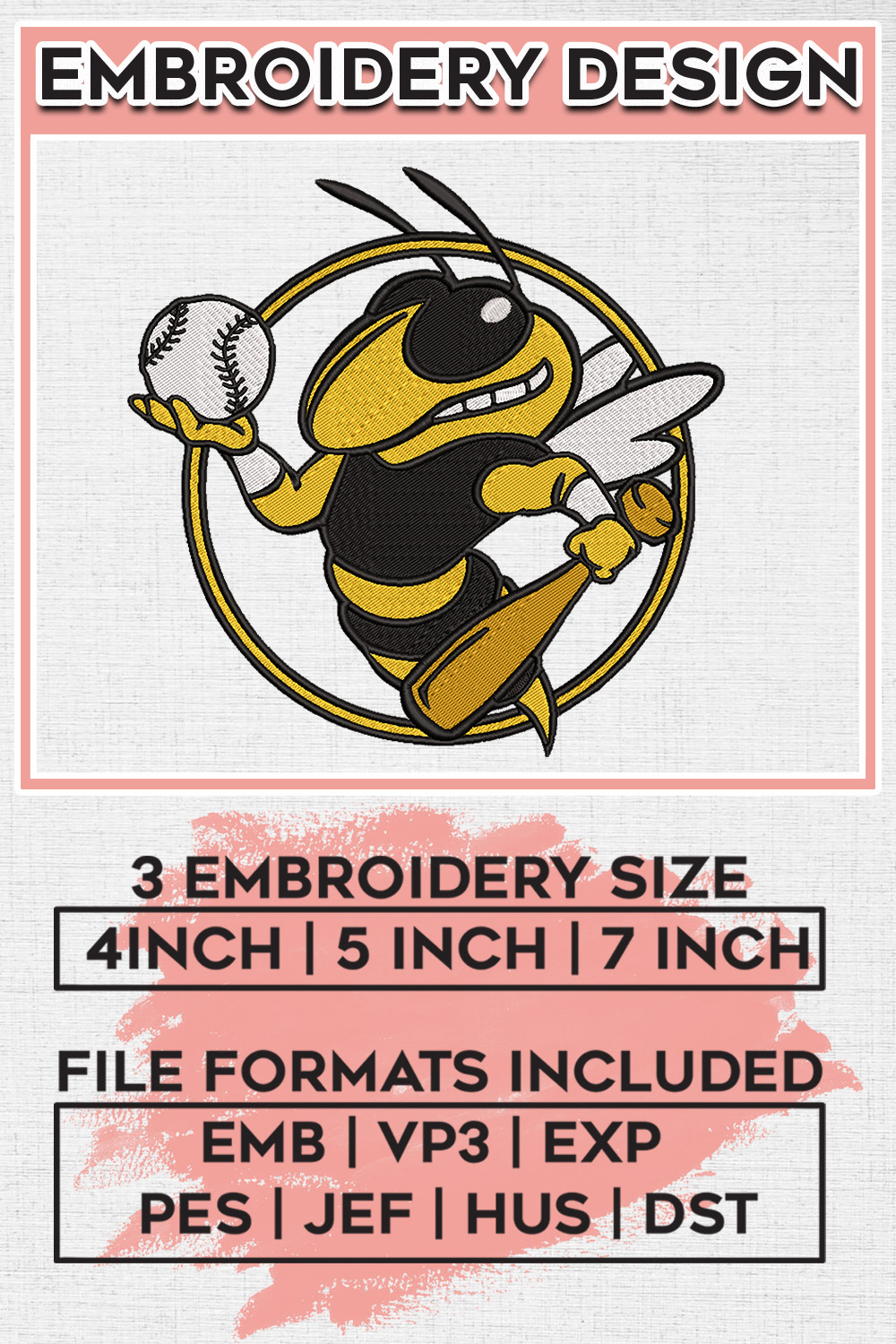 NCAA GT Yellow Jacket Mascot Logo Embroidery Designs, NCAA Georgia Tech Yellow Jacket Machine Embroidery Files, NCAA Logo embroidery designs, Football Team Logo, Digital Download