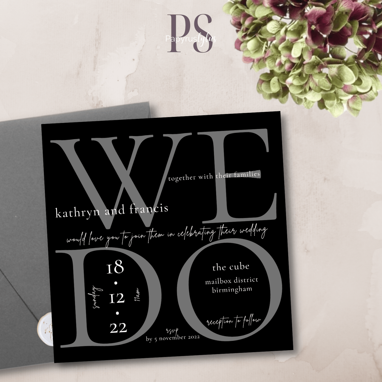 KATHRYN WEDO Wedding Invitation Template | BLACK