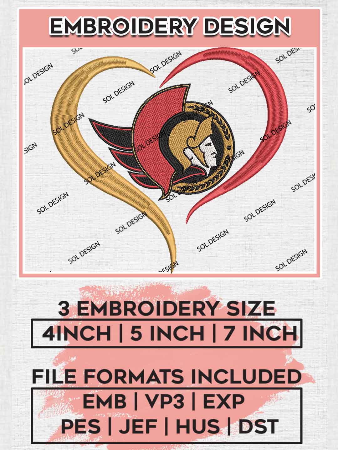 Ottawa Senators Team Heart Logo Embroidery Designs, Ottawa Senators Hockey Team Embroidery Files, NHL Senators Team Logo Embroidery, NHL Hockey Team Machine Embroidery Design, 3 sizes, Digital Download