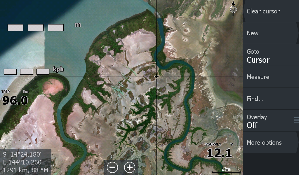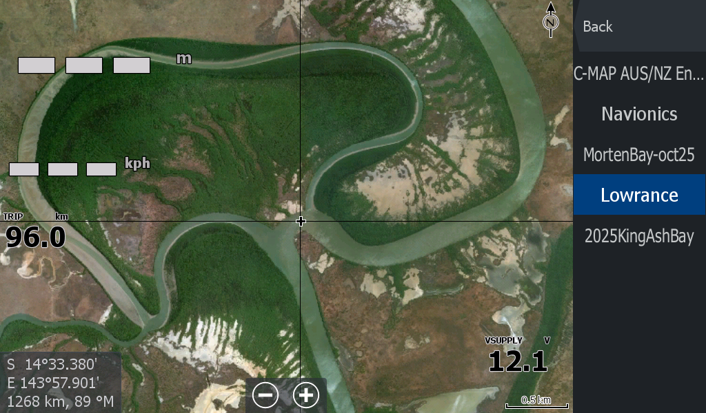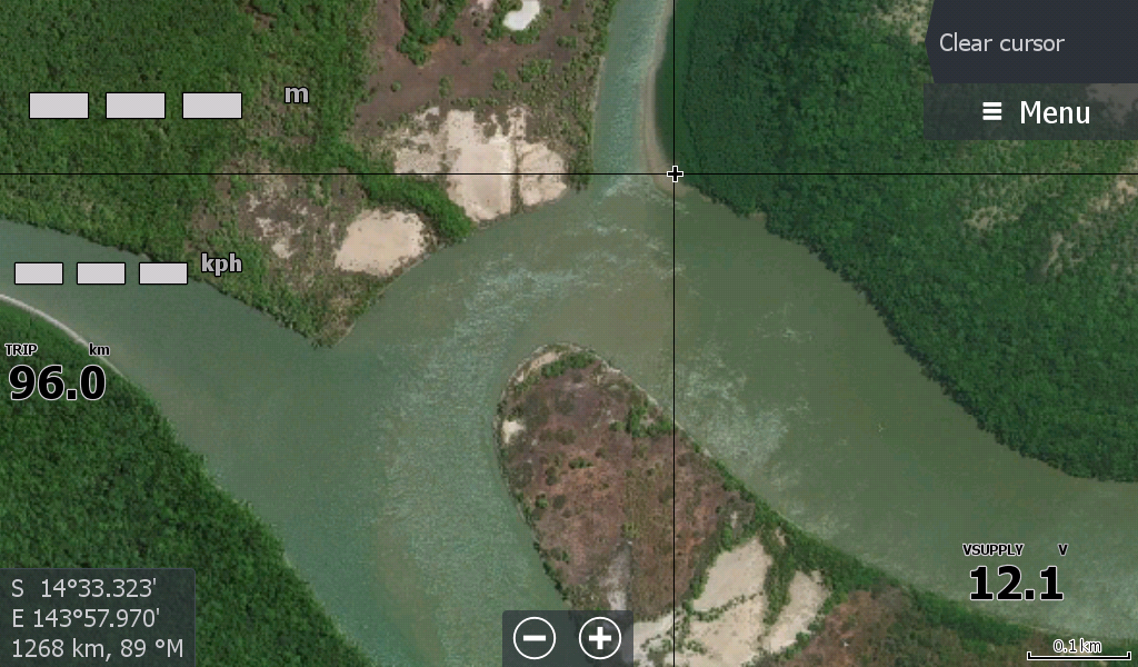 Here at Princess Charlotte Bay at the base of Cape York Qld is the 59 kilometre long North Kennedy River barely making a scratch on Navionics & C-Map Charts.