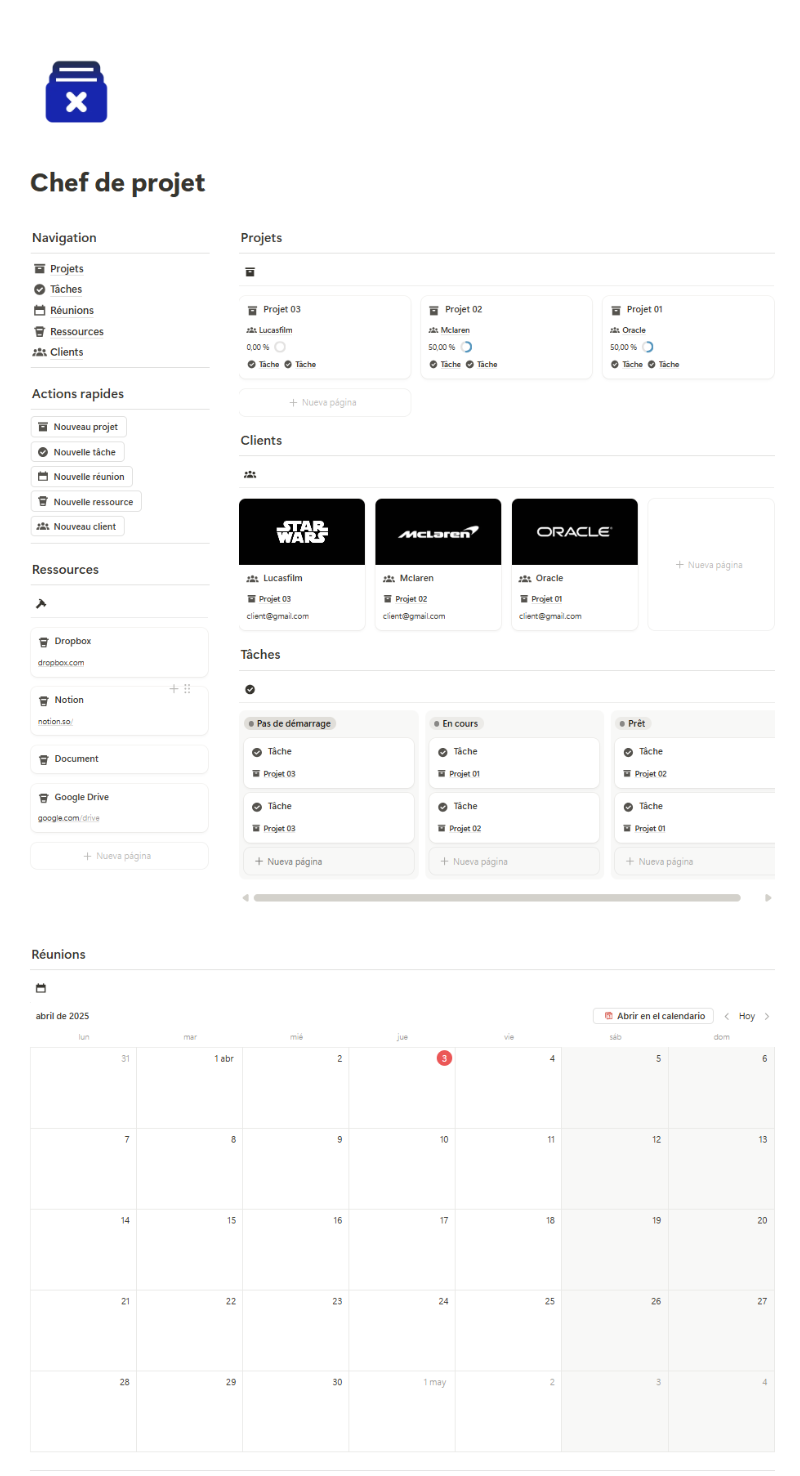 Gérez vos projets avec clarté et efficacité grâce au modèle « Gestionnaire de Projets » pour Notion. Conçu pour les entrepreneurs, freelances et équipes de travail, cet outil vous permet de planifier, organiser et suivre chaque phase de vos projets sans perdre le contrôle.