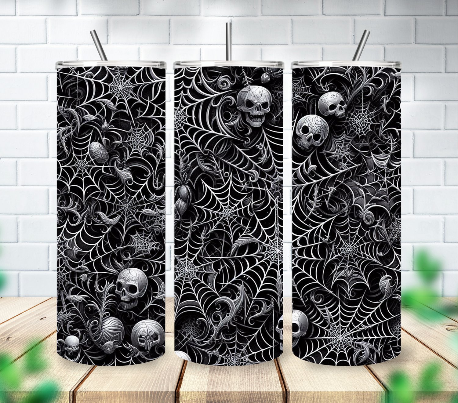 Skulls Spiderwebs Halloween Tumbler Travel Mug