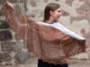 22 stitches and 37 rows in 10 cm (4”) in stockinette stitch. Gauge is not essential but will also affect the amount of yarn used. Differences in gauge may also change the size of the finished shawl.