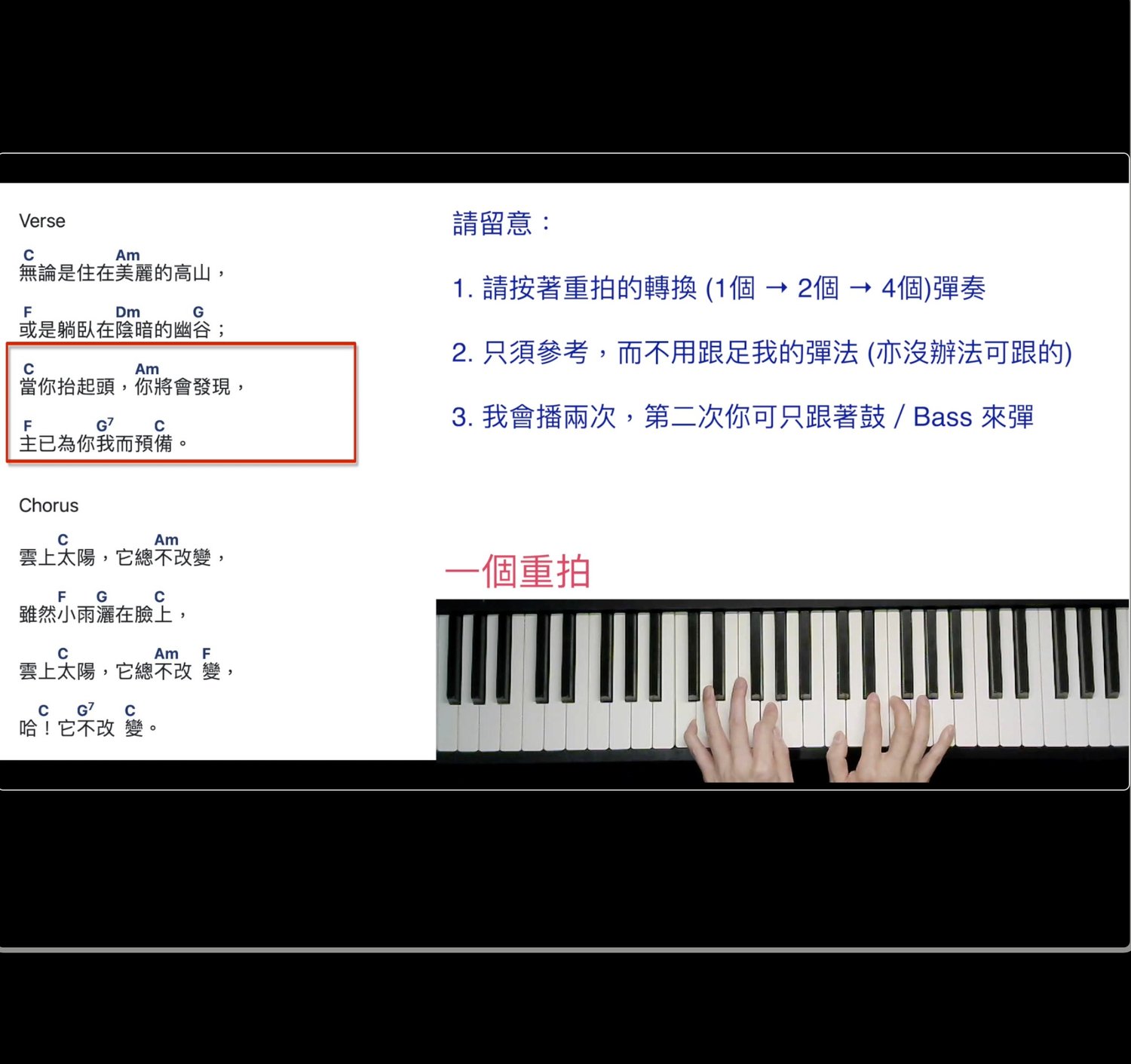 以單元形式 針對傳統學琴 轉型 彈現代詩歌 (彈Chord) 最需要的