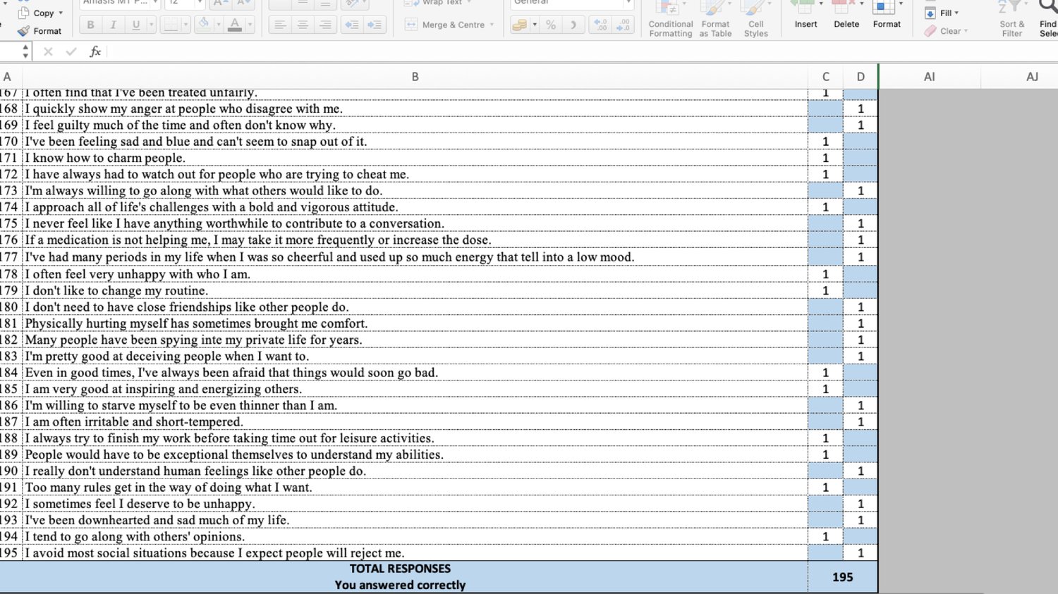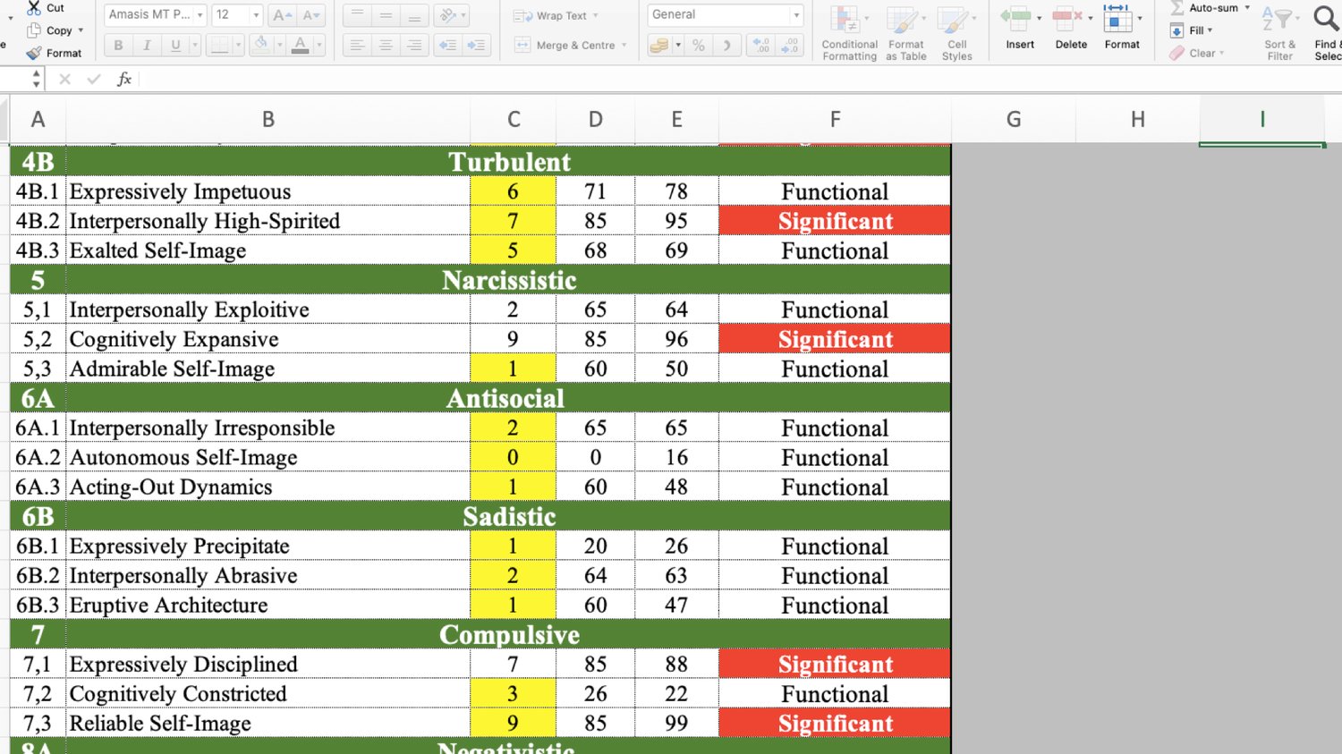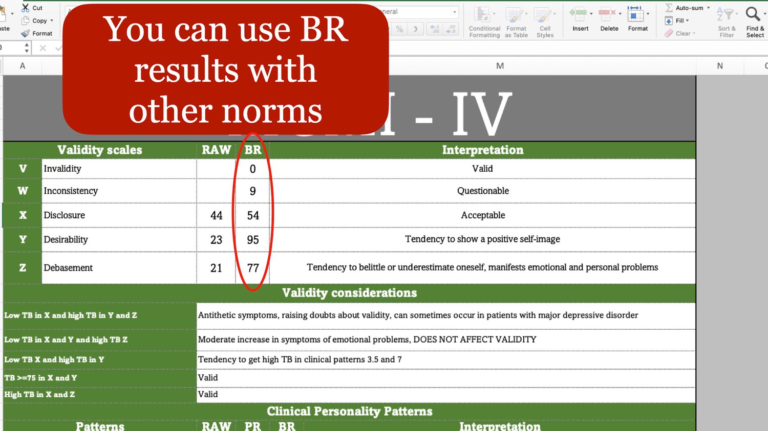 1) Excel Template for Autoscoring the MCMI-IV in English and American norms - unlimited scoring without interpretations