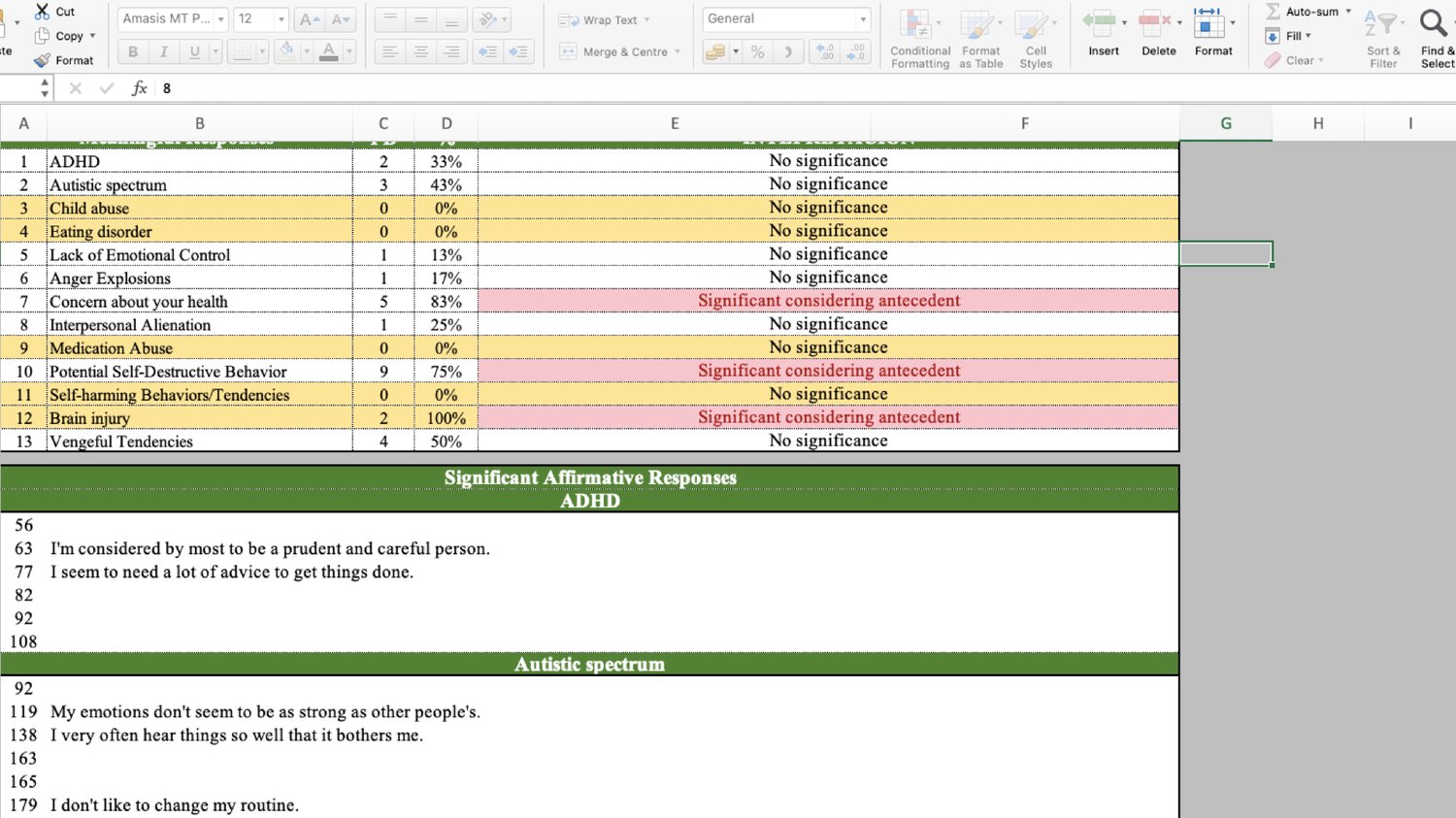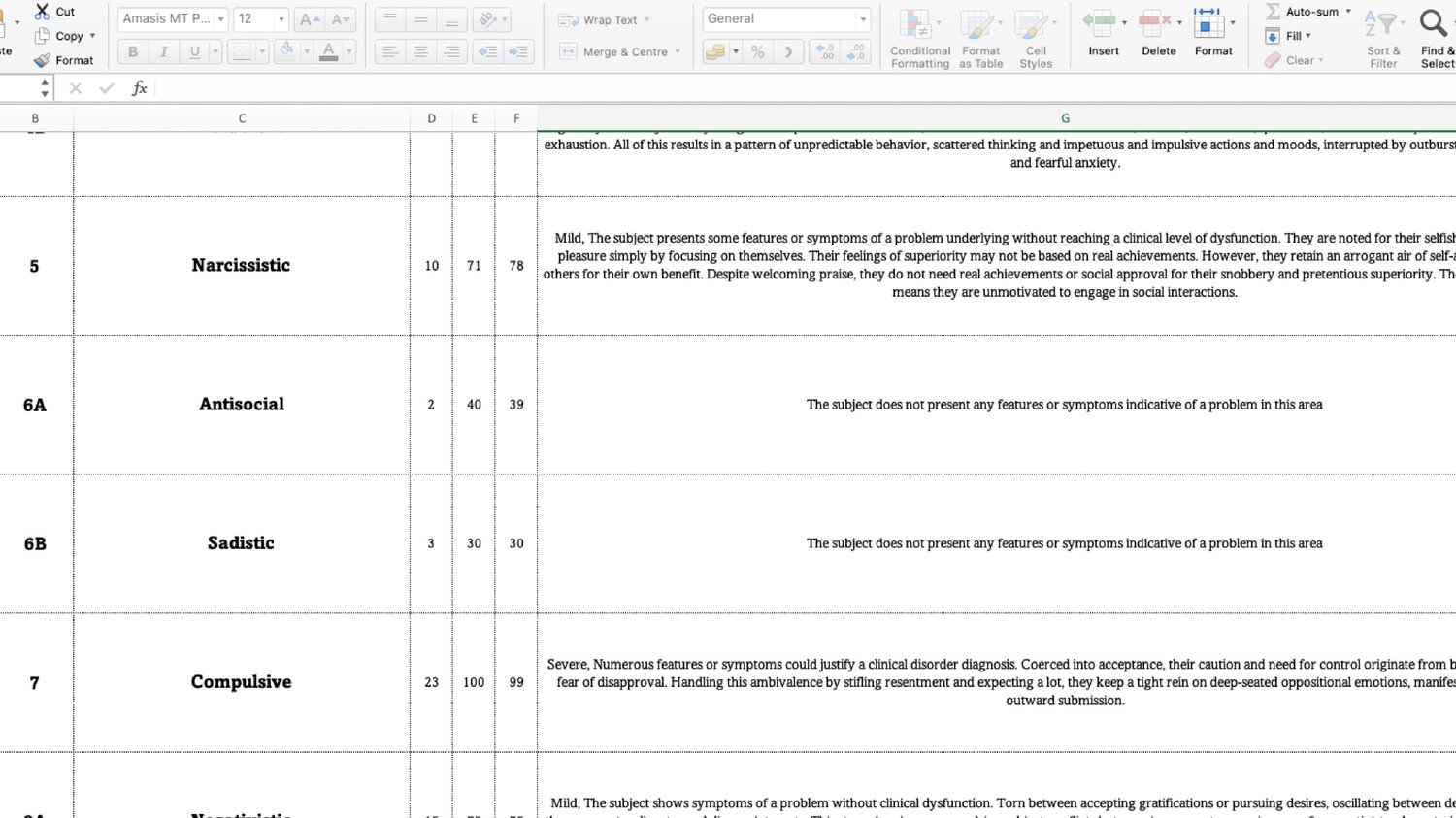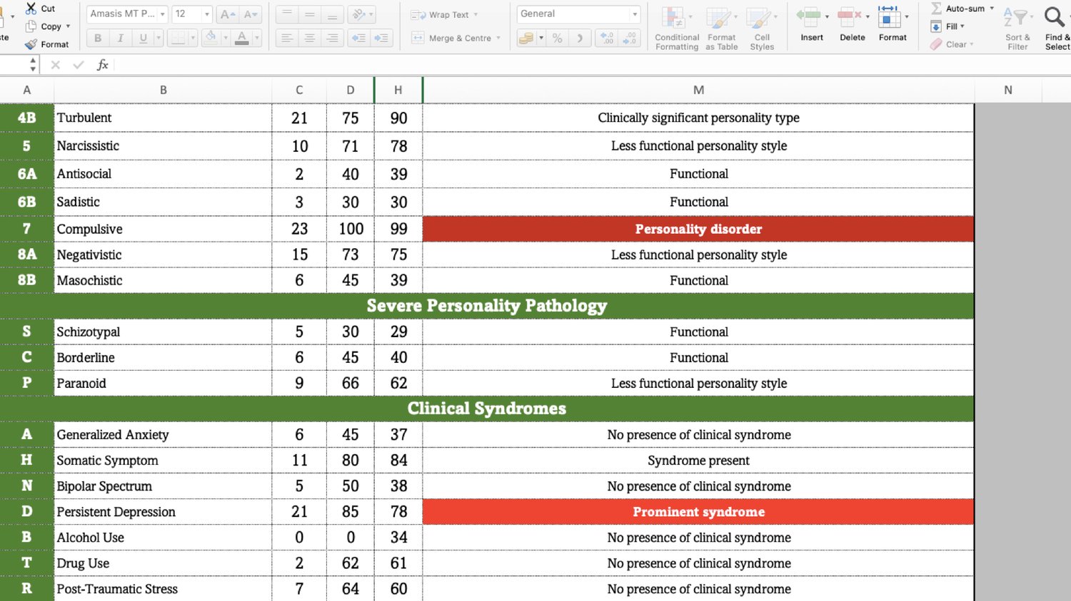 MCMI-IV (Millon Clinical Multiaxial Inventory - IV) Autoscoring Template in English with Interpretations