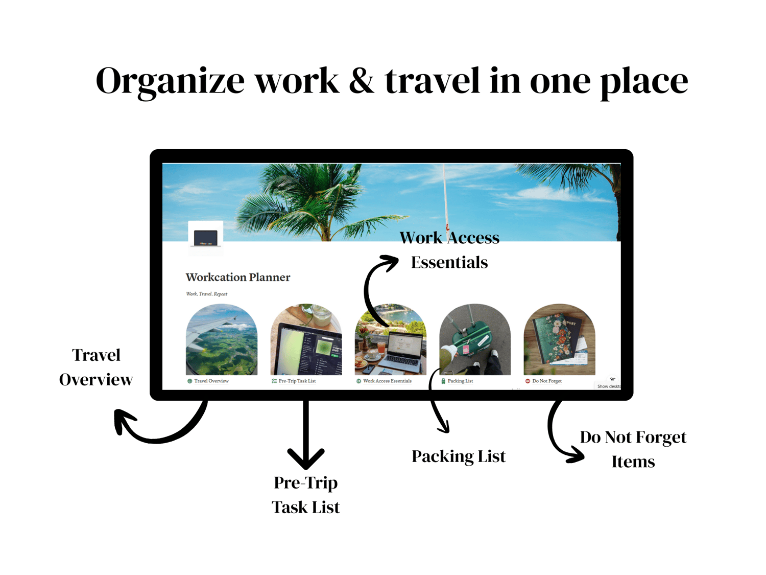 Workcation Planner Notion Template | Remote Work + Travel Dashboard for Freelancers, Virtual Assistants & Remote Workers