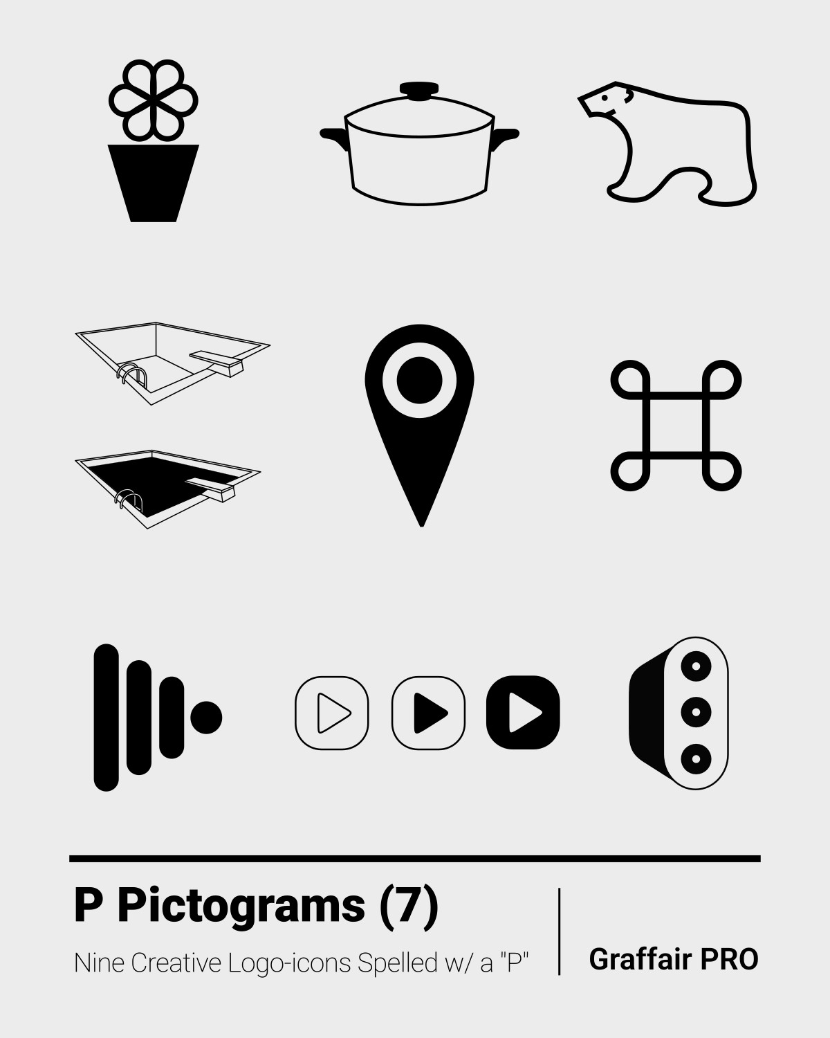 P Pictograms (7): The 7th set of 9 pictograms, each beginning with a "P".