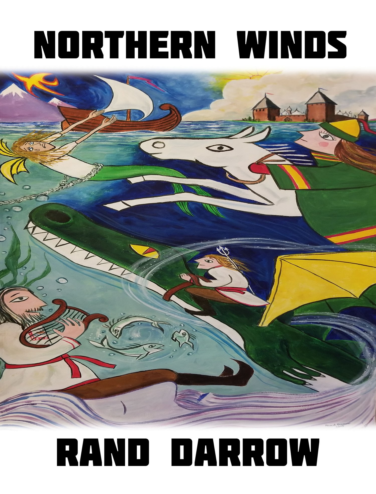 The story NORTHERN WINDS is a bylina which is a Slavic epic. It is usually an oral narrative poem often sung and loosely based on historical fact. It has a bogatyr (hero) or Polyanitsa (heroine) and is divided into three parts: creation of bogatyr, mission, and moral or goal.I have combined puppet figures with my paintings to help narrate the story, using Christmas lights, shower curtains and whatever to create a mood. The puppets are also made of found materials such as dish soap bottles, wire, papier maché, Styrofoam insulation, sculpta-mold and anything else I can get my hands on. I wanted to create my own world and enjoy taking found materials and transforming it into something else.