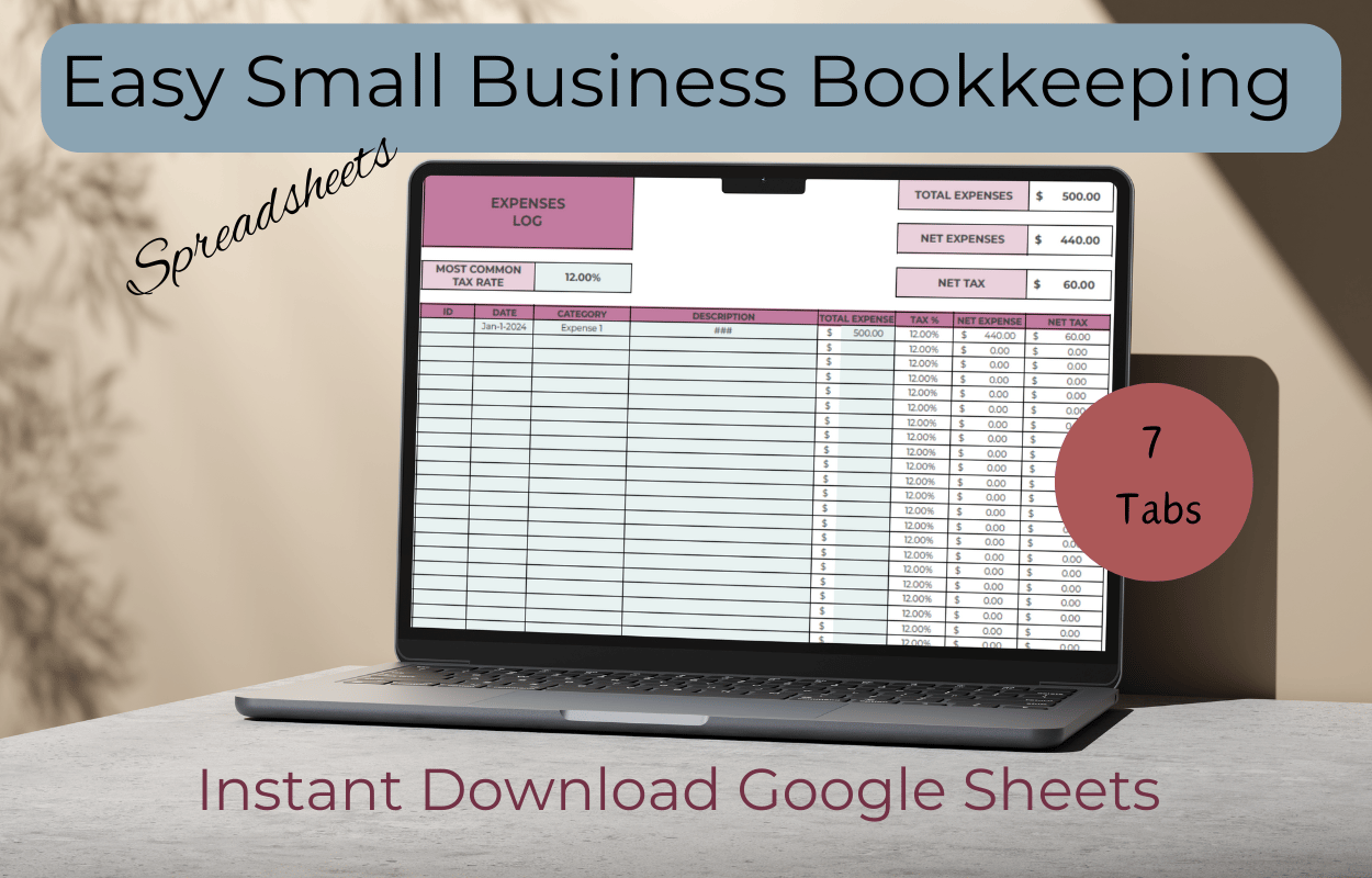 ♦ This 6 tab Small Business Bookkeeping Spreadsheet Template (both Google Sheets and Excel) includes: