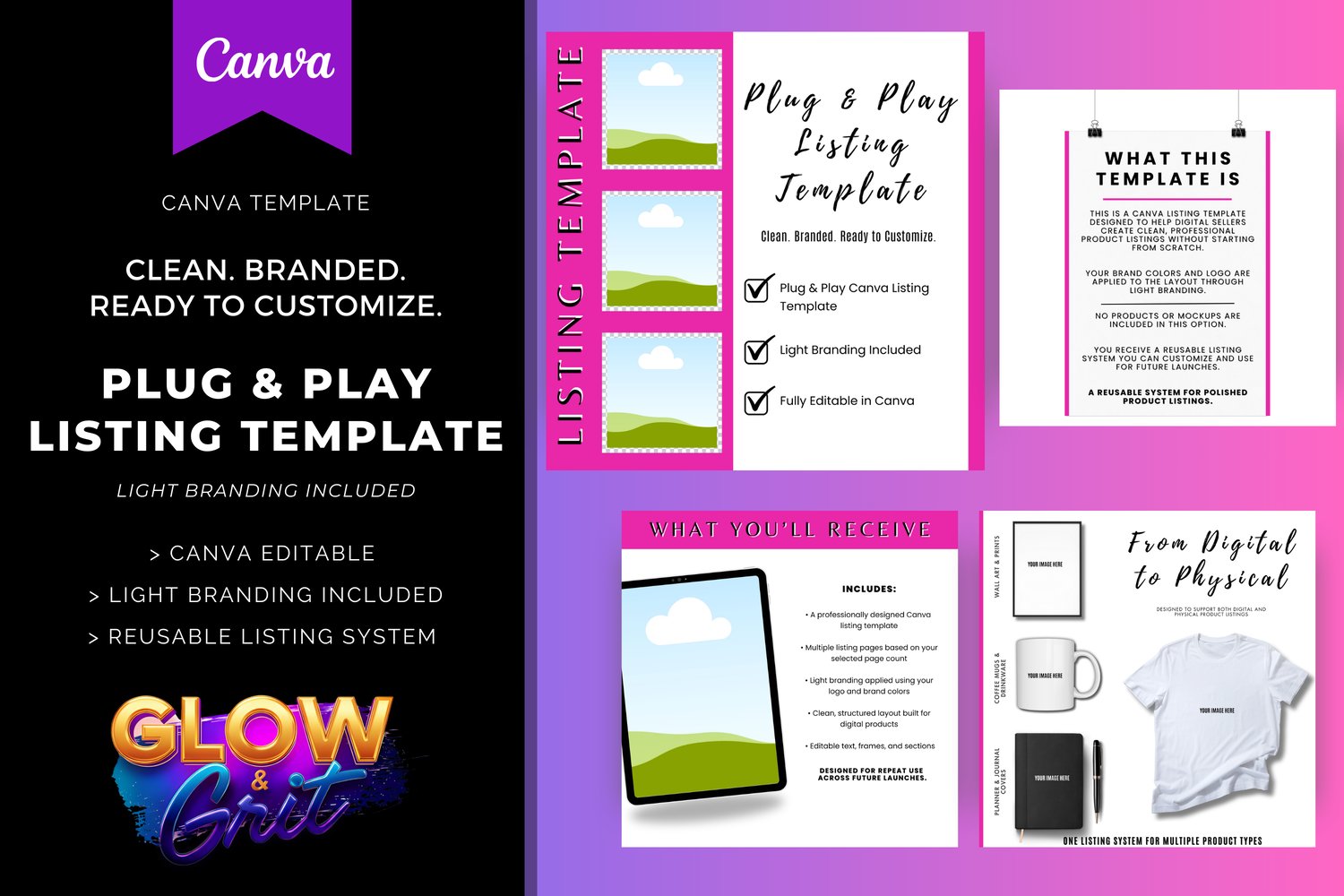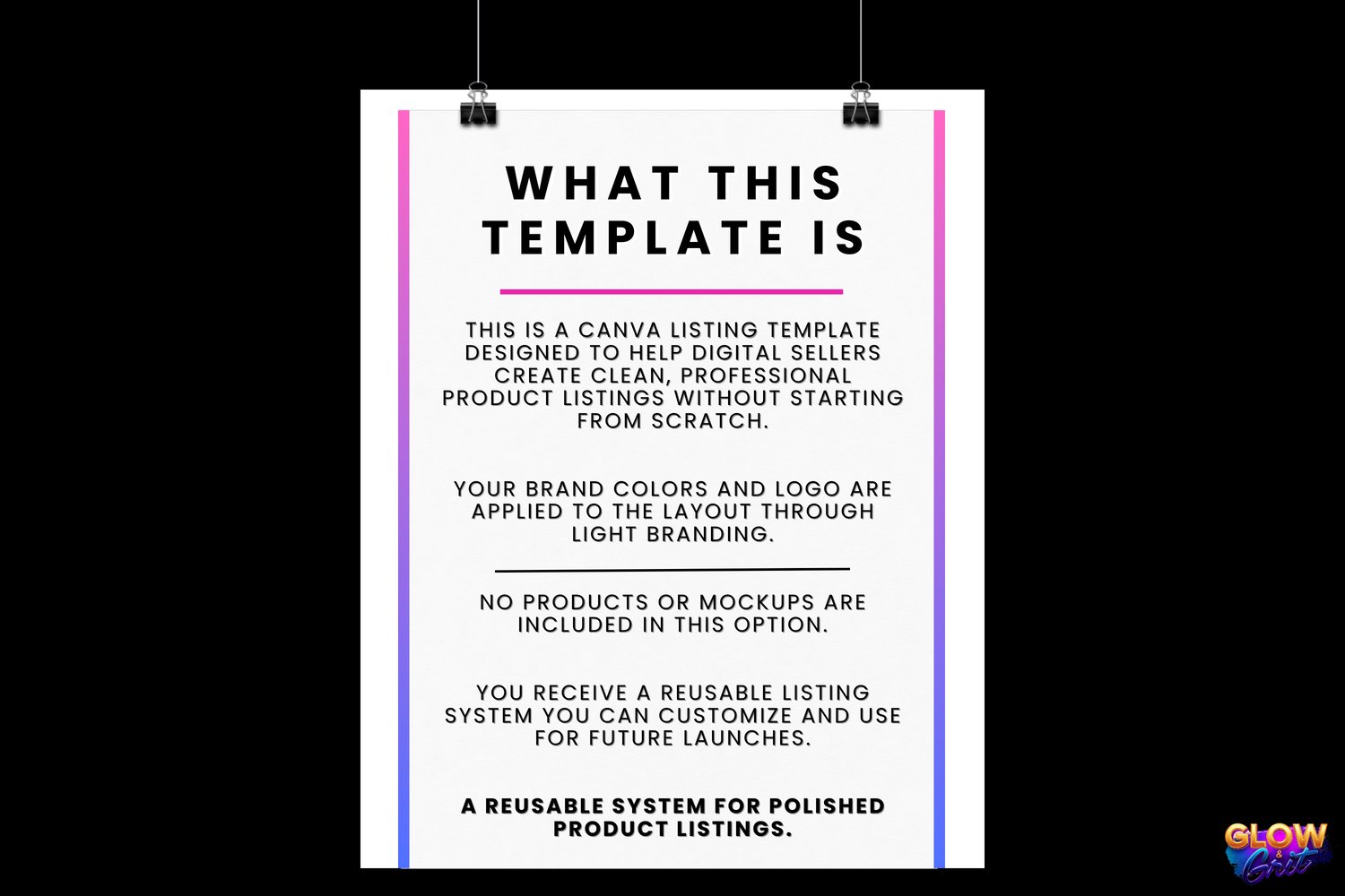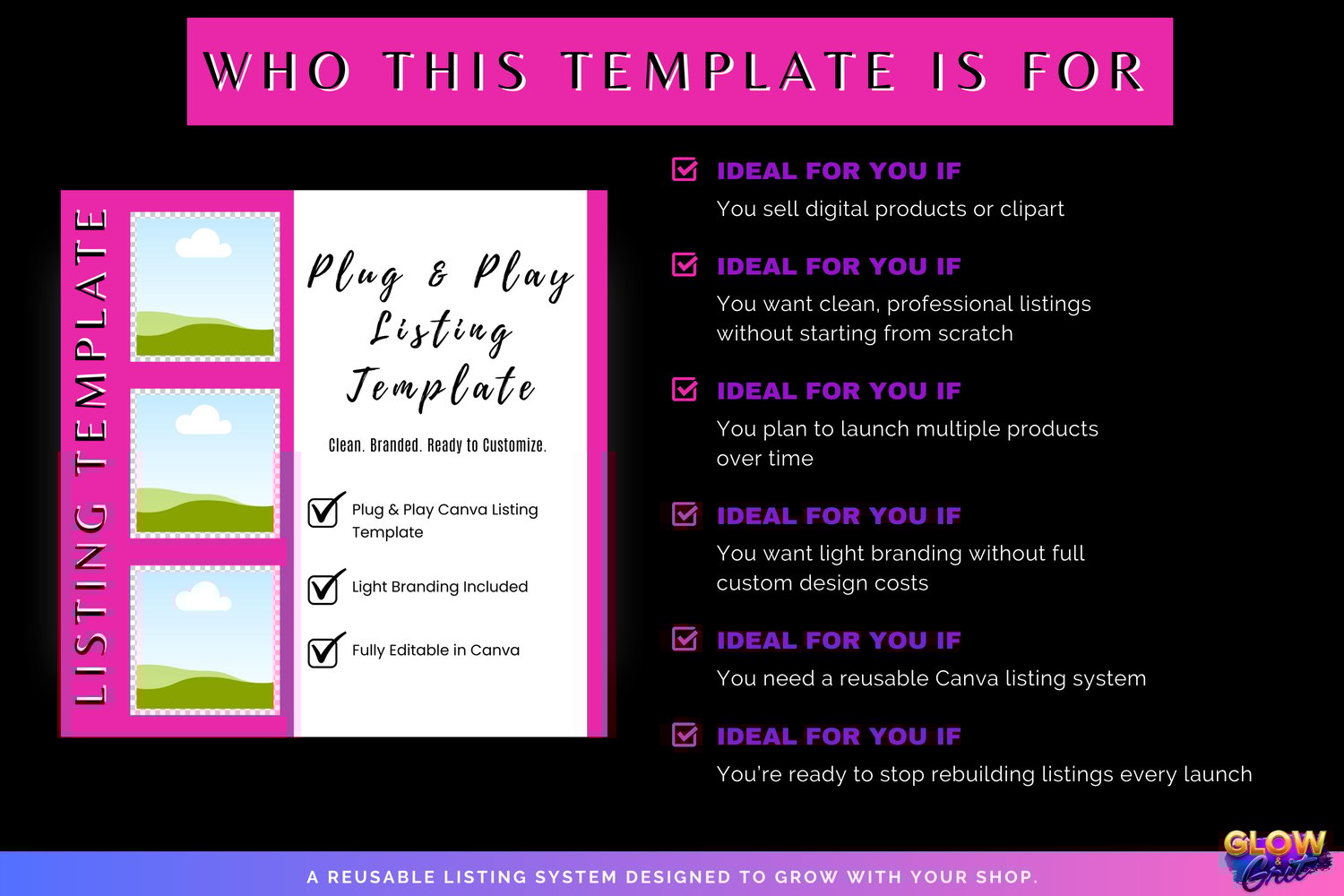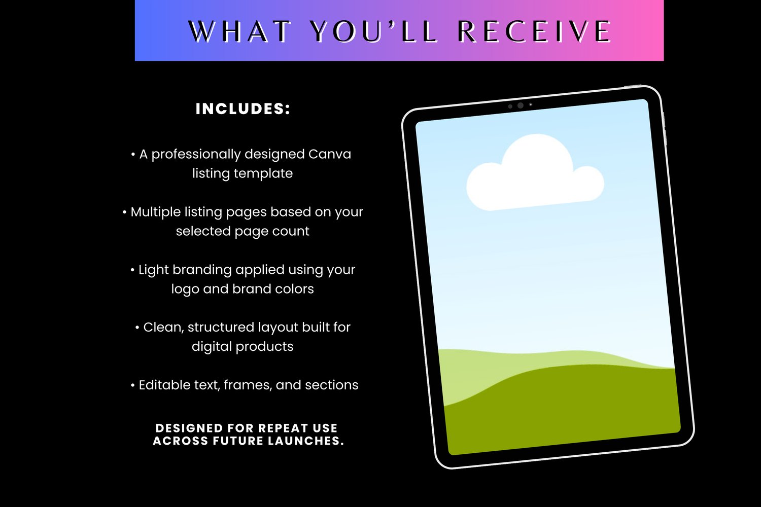 A bold, professional Canva listing template designed to help digital sellers create clean, high converting product listings without starting from scratch.