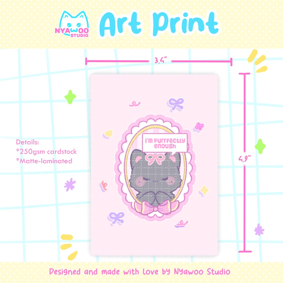 I'm Purrfectly Enough Cat Art Print | Affirmations and Positive Vibes Theme